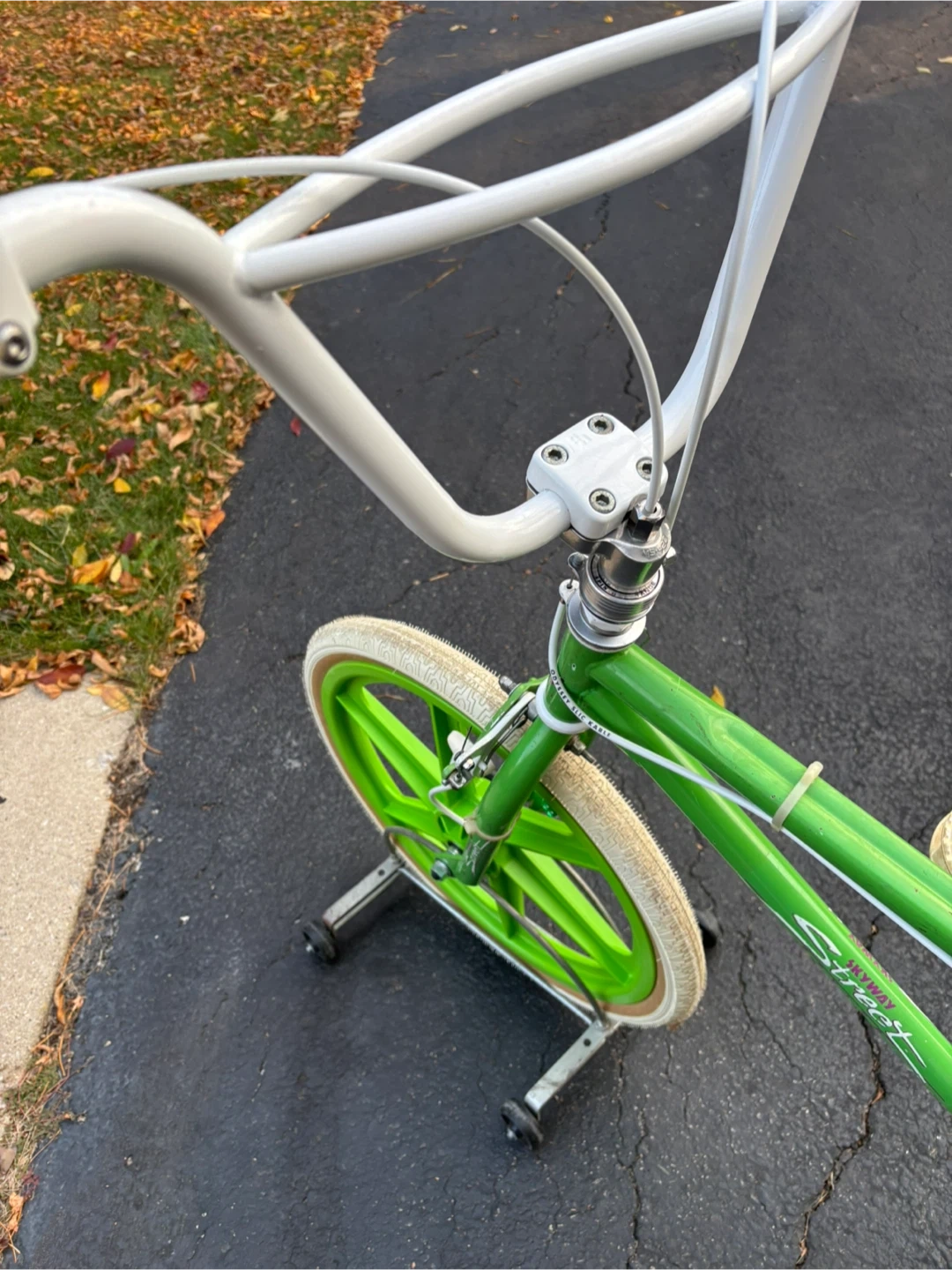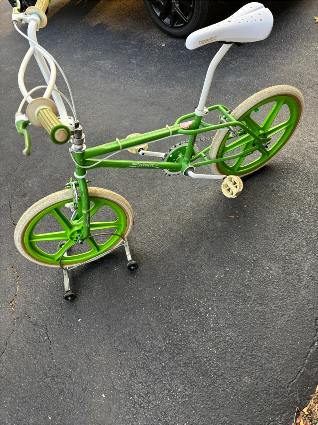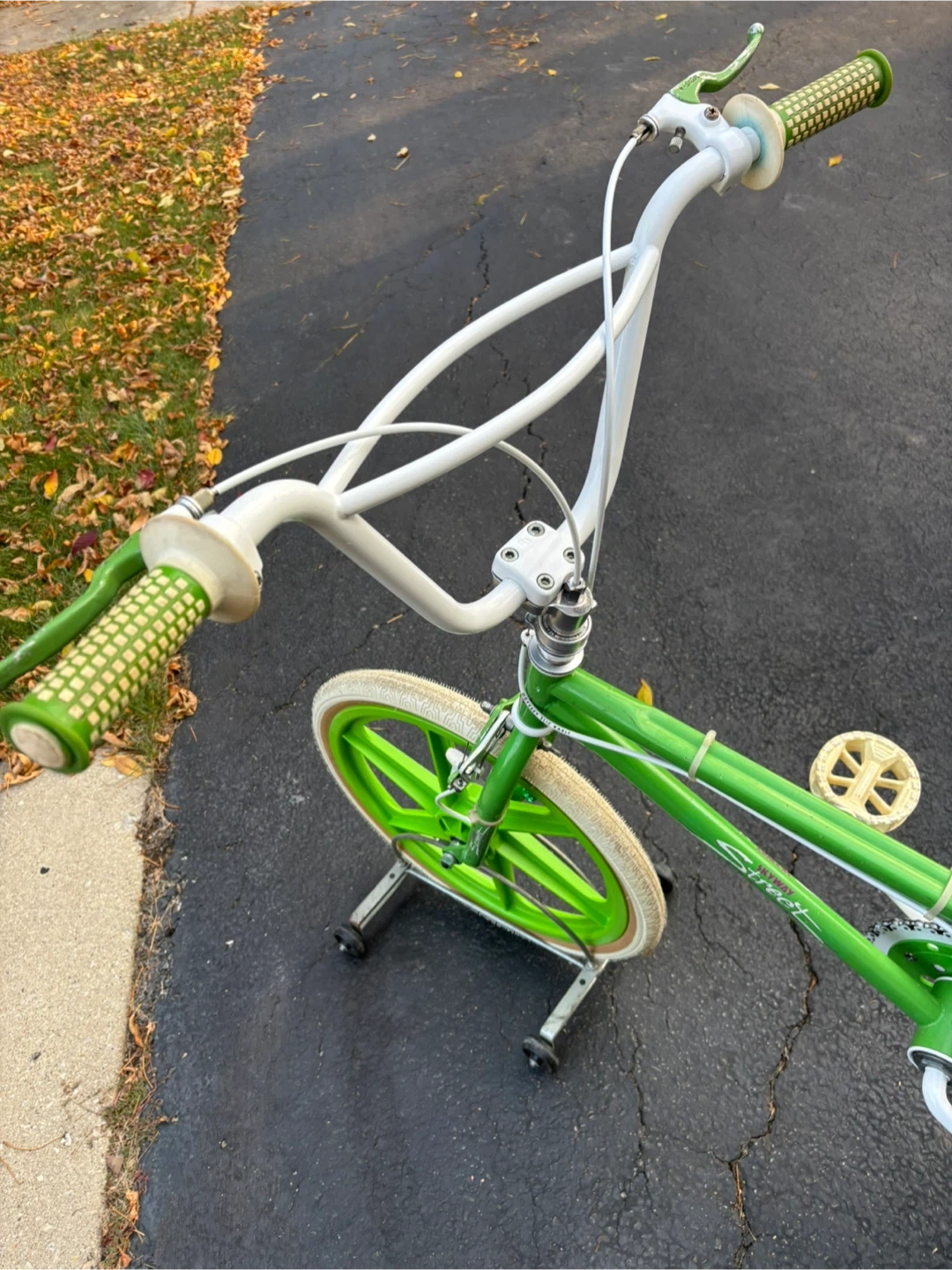 10Selling a Skyway Street Beat BMX bike in green and white! It's a cool vintage bike with a unique look. The bike is in good condition and ready to ride or take to bike show. Check out the photos for more details!