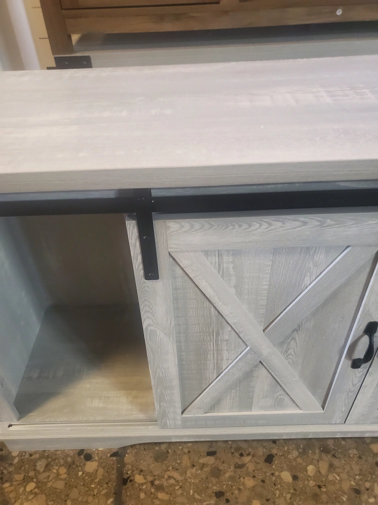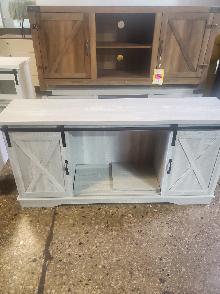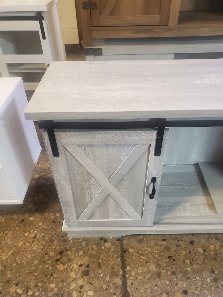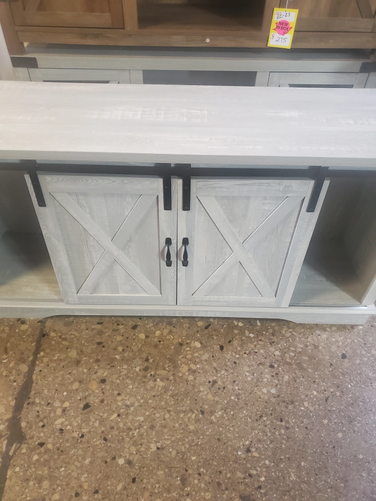 Sliding Barn Door TV Stand Stone Gray)New In A Box)