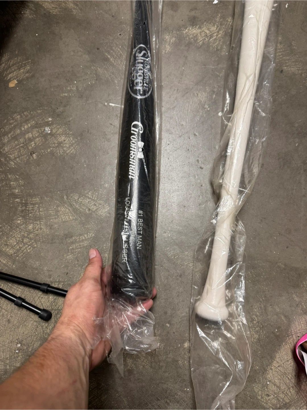 Selling two Slugger baseball bats, one in black and one in white. Number 34