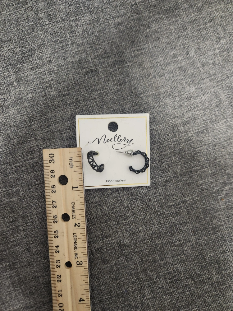 Small black hoop earrings. Geometric design. Post backings. Brand new.