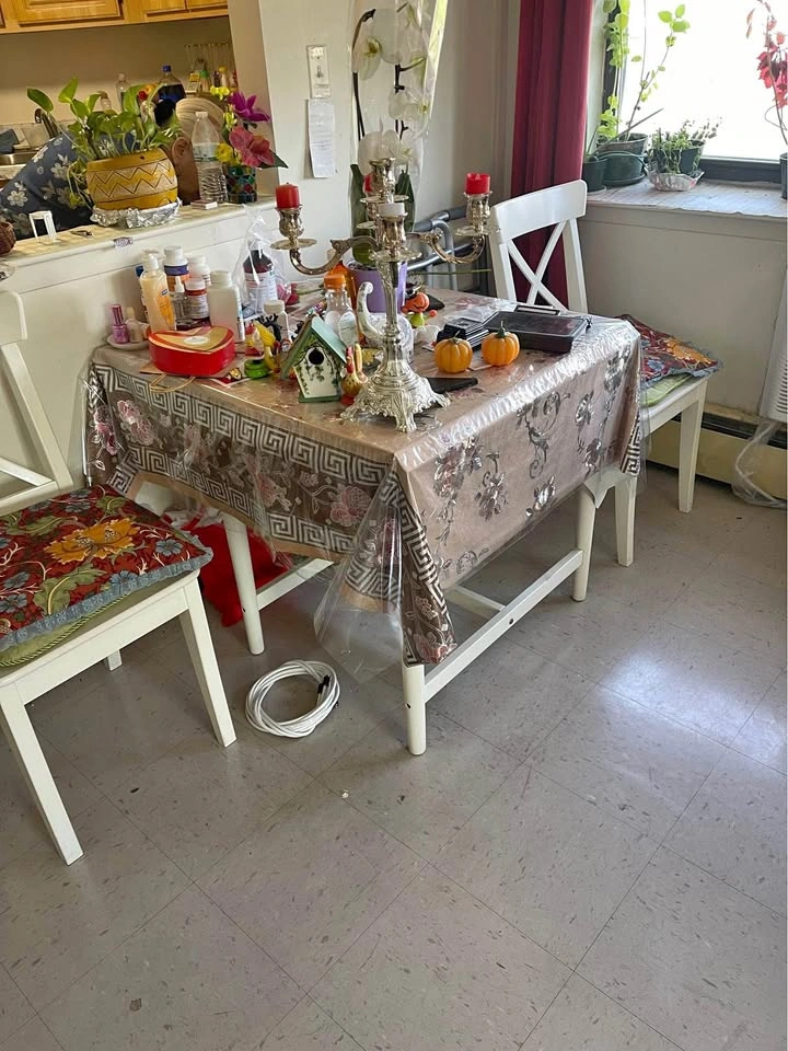 Glass Top Dining Table with 4 Gray Velvet Chairs