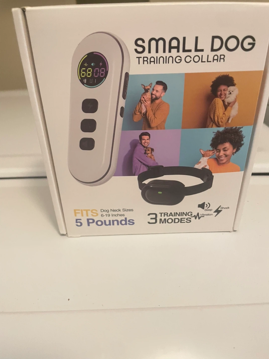 I'm selling a brand new small dog training collar, still in its original box! It fits dog neck sizes 6-19 inches and is suitable for dogs up to 5 pounds. It features 3 training modes. The box includes all original components.