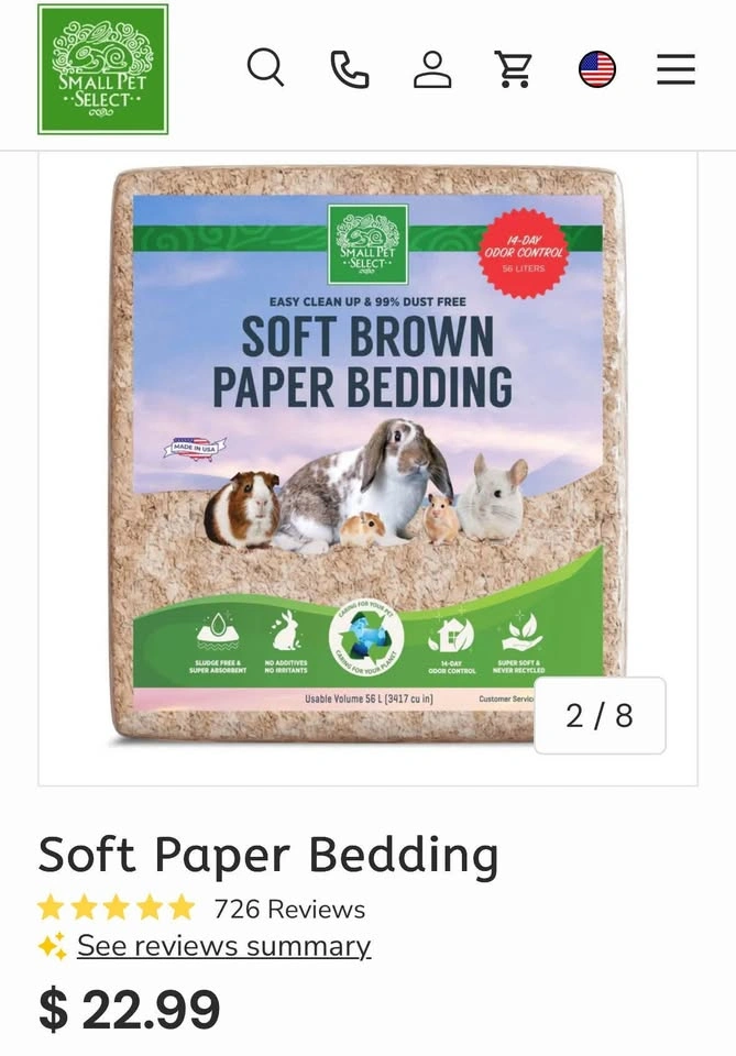 Brand new, never opened bag of Small Pet Select Premium Soft Paper Bedding (White, 56L). Safe, dust-free, and extra absorbent—ideal for rabbits, guinea pigs, hamsters, gerbils, rats, chinchillas, and other small pets. I bought it for my rabbit but no longer need it, so hoping another pet can benefit. MSRP $22.99. ✅ Expands to 56 liters ✅ 100% safe, unbleached paper ✅ Soft and comfortable for nesting and burrowing ✅ Excellent odor control, low dust formula ✅ Trusted brand for small animal care