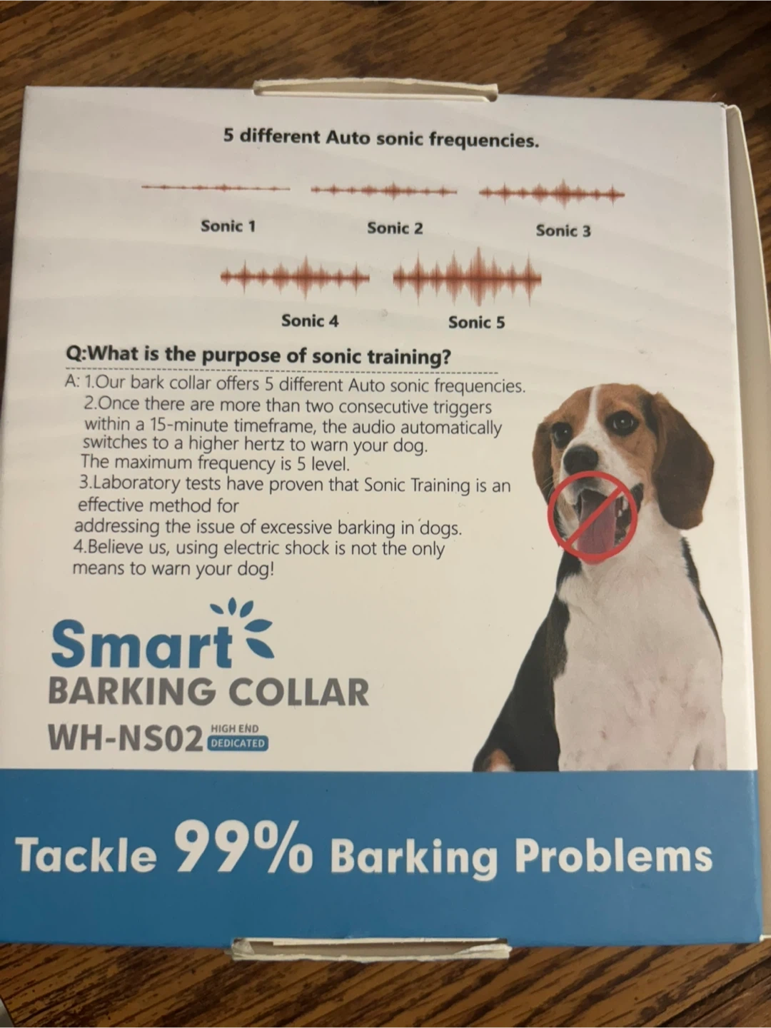 60I'm selling a brand new Smart Barking Collar WH-NS02 in its original box! This high-end dedicated collar features auto bark control with 5 levels of frequency. It also has 9 levels of sensitivity and 3 levels of safe shock. Tackle 99% of barking problems with this smart collar!