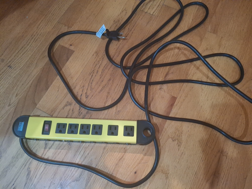 Smart Electrician® 6-Outlet Power Strip with 15' Cord TESTED WORKS 15 Feet Power Cord with Metal Casing The Smart Electrician® 6-Outlet Power Strip with 15' Cord is a high-quality and reliable electrical accessory designed for home use. With a maximum input current of 15 amps and a cord length of 15 feet, this power strip features six outlets and is constructed of durable metal material. The bright yellow color makes it easy to locate, while the UL listing agency standards ensure safety and quality. The Smart Electrician brand guarantees a dependable product that is both practical and efficient for powering multiple devices in your home.