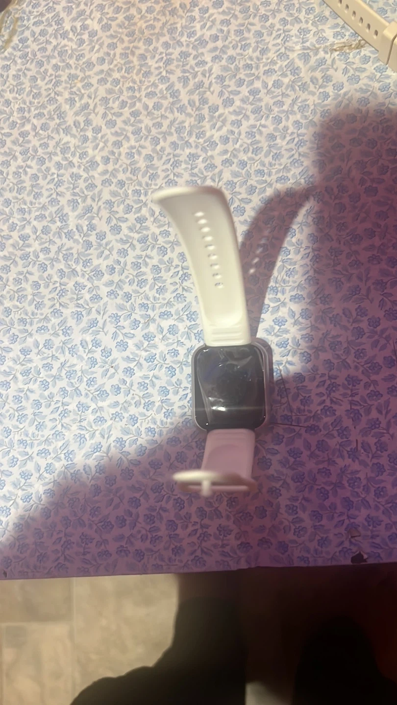 Selling a smart watch with a white band. It comes with its original box. It's in great condition and ready for a new home!