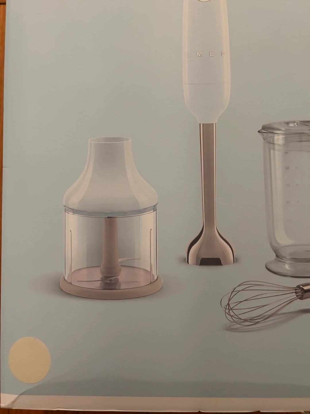 10The SMEG Handheld Immersion Blender HBF03CRUS is a versatile kitchen appliance designed for a variety of tasks such as chopping, blending, emulsifying, mixing, pureeing, and whisking. With its retro style and cream color, this BPA-free blender features a 350-watt motor with 5 speeds, stainless steel blade, and automatic shut-off for safety. The package includes a beaker and is easy to clean with hand wash care instructions. Perfect for any home cook looking for a convenient and efficient tool to add to their kitchen arsenal.