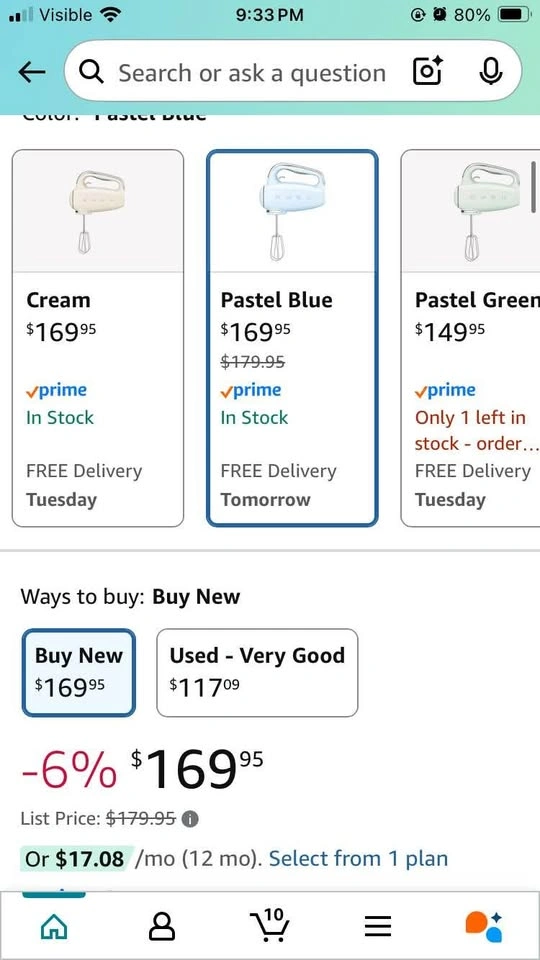 SMEG Pastel Blue 50's Retro Style Electric Hand Mixer
