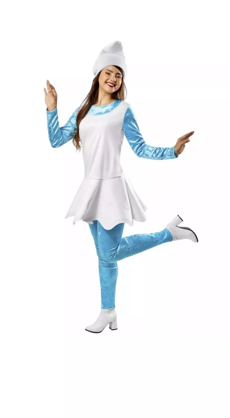 263A Smurf costume with a white dress, blue leggings, and hat.A fun and cute costume for any Smurf fan.