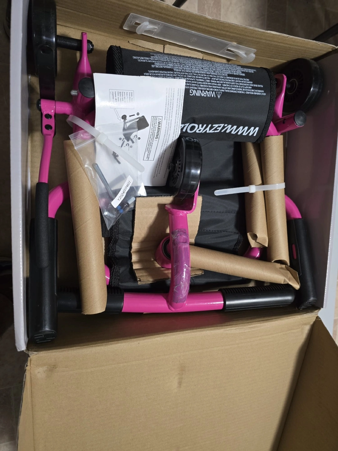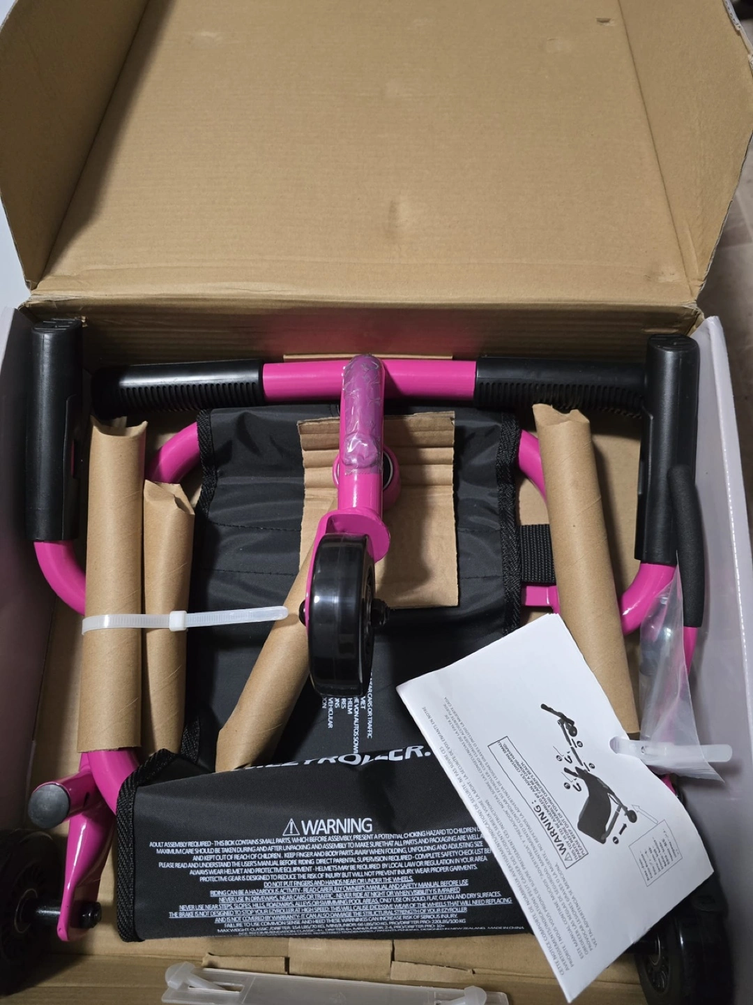 New in box. Pink EzyRoller Classic Ride On Scooter. Ages 4+. Requires assembly. Includes instructions and all parts.