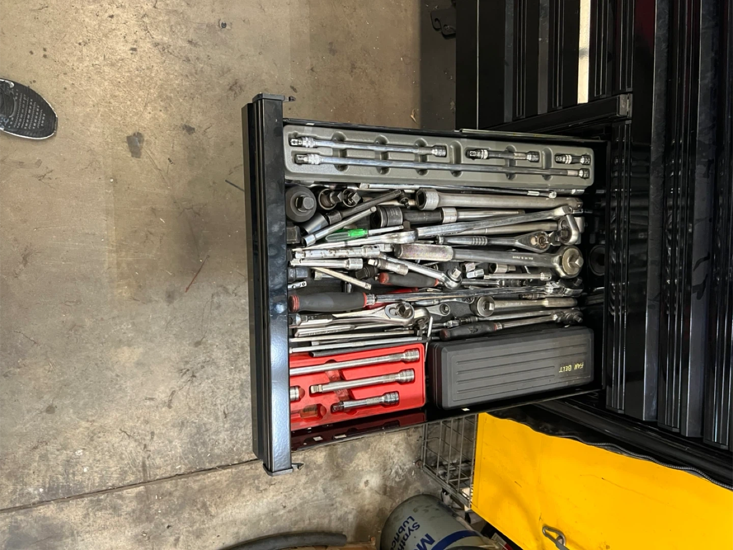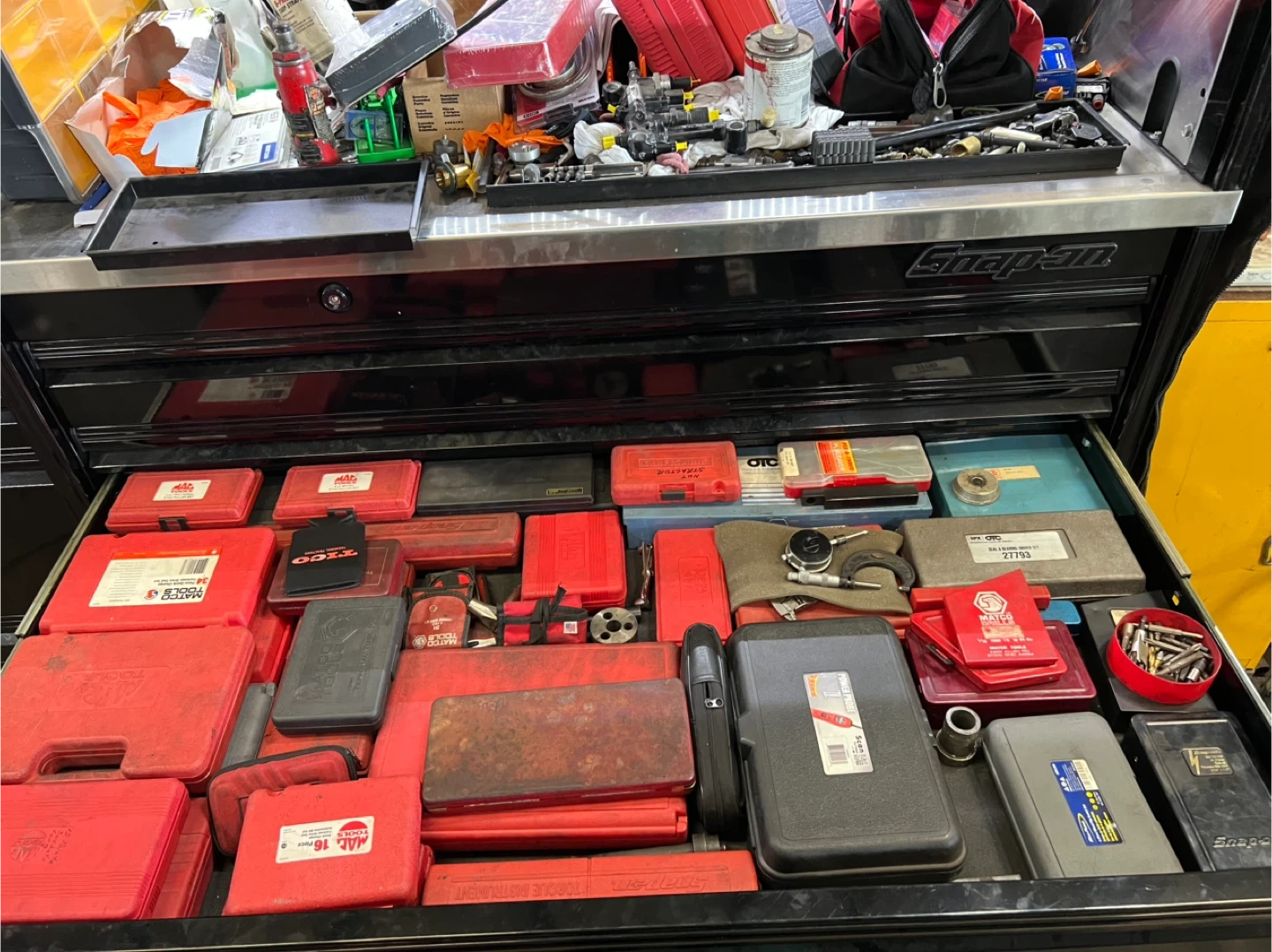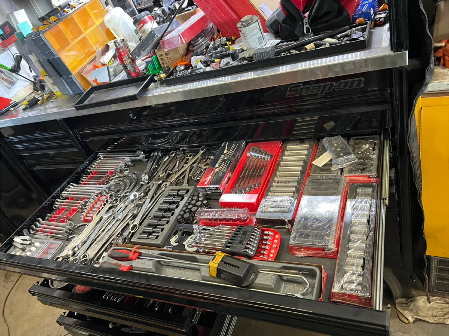 10Selling a black Snap-on tool chest. It's in good condition and ready to organize your tools! Inside there are various tools.