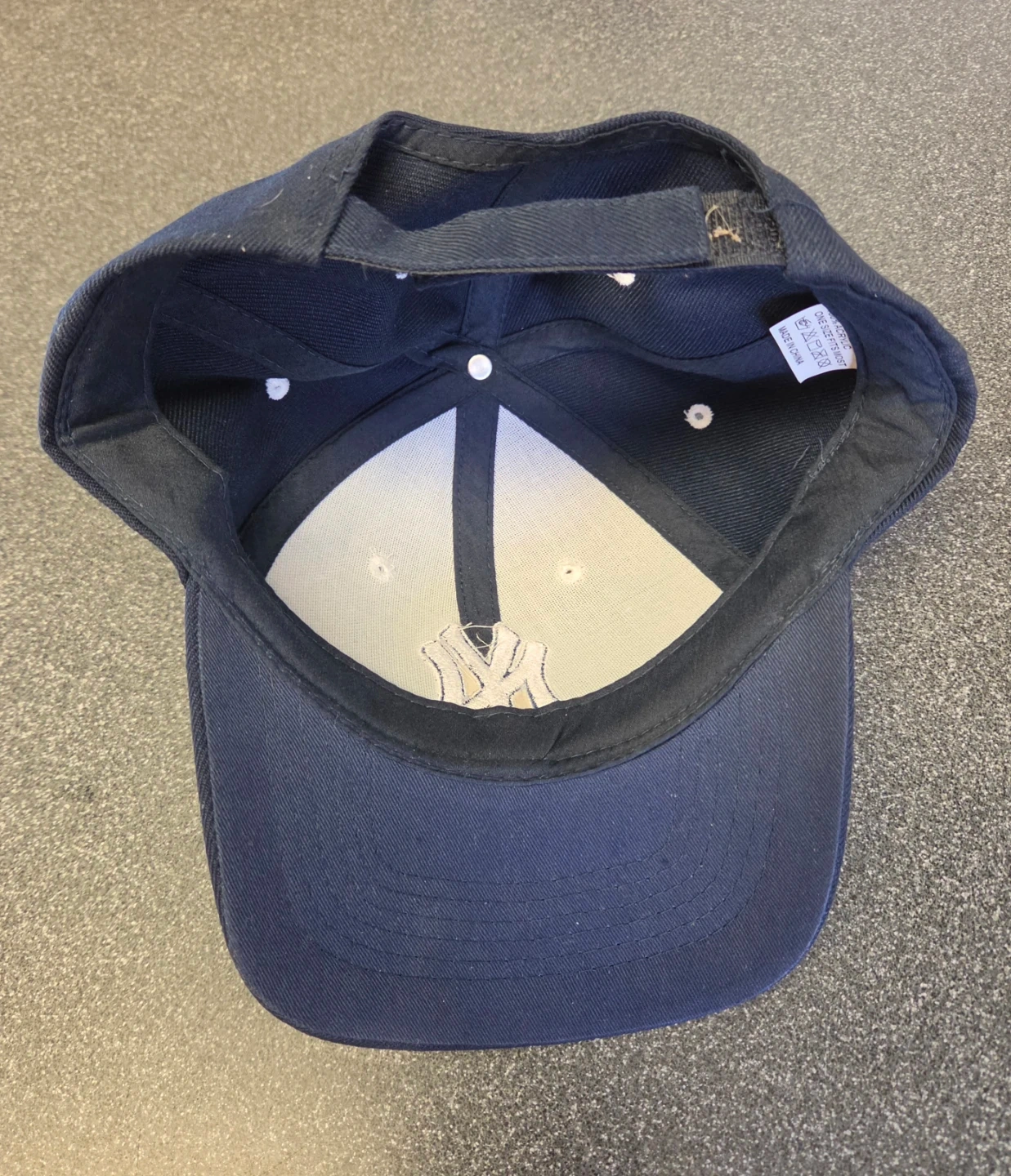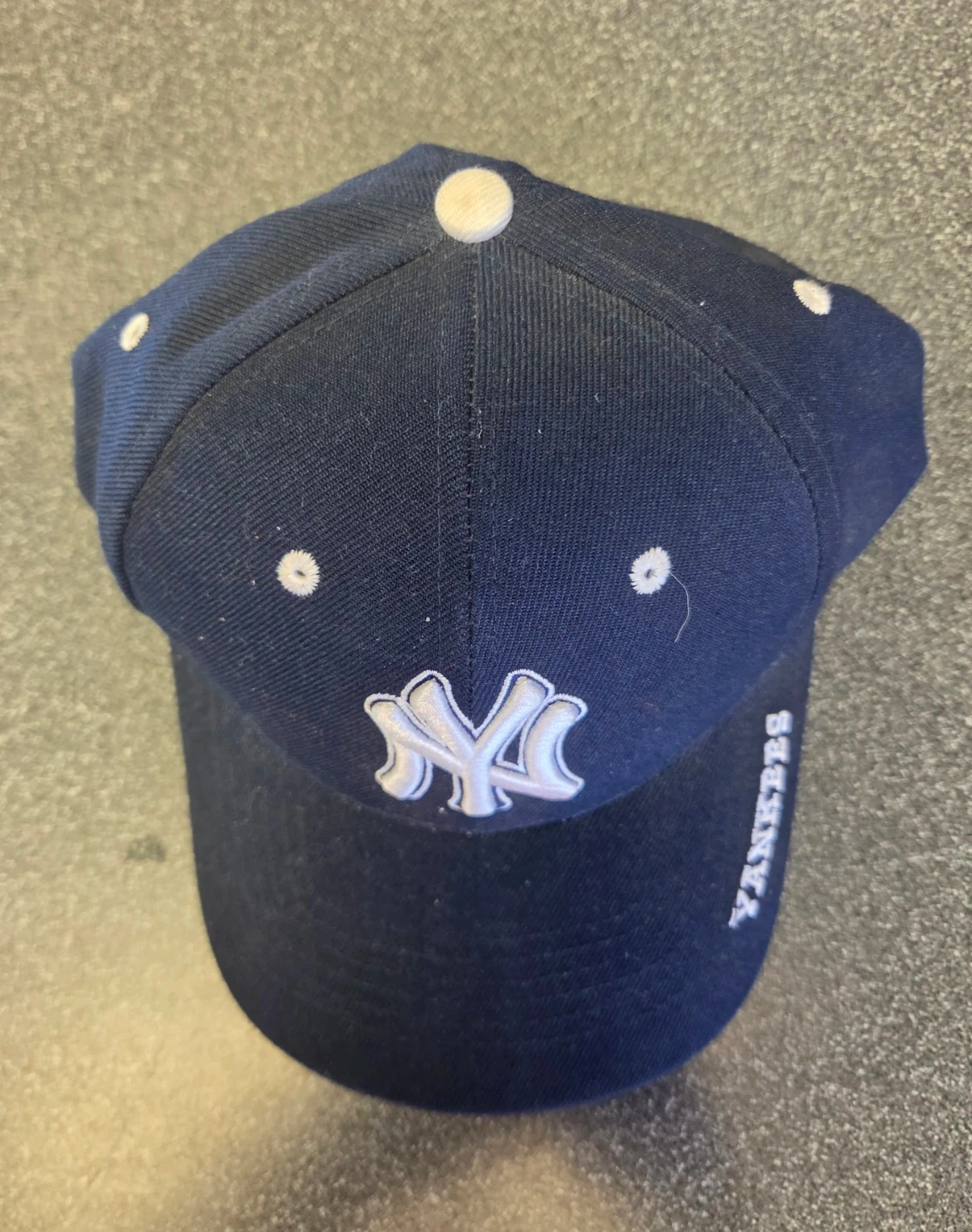 New York Yankees hat. One size fits all. Has velcro to adjust size. This hat was never worn. In excellent condition without a tag.