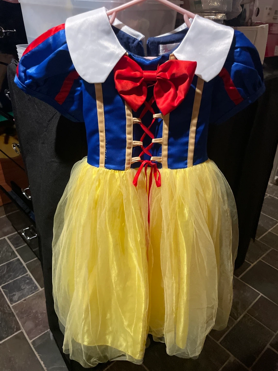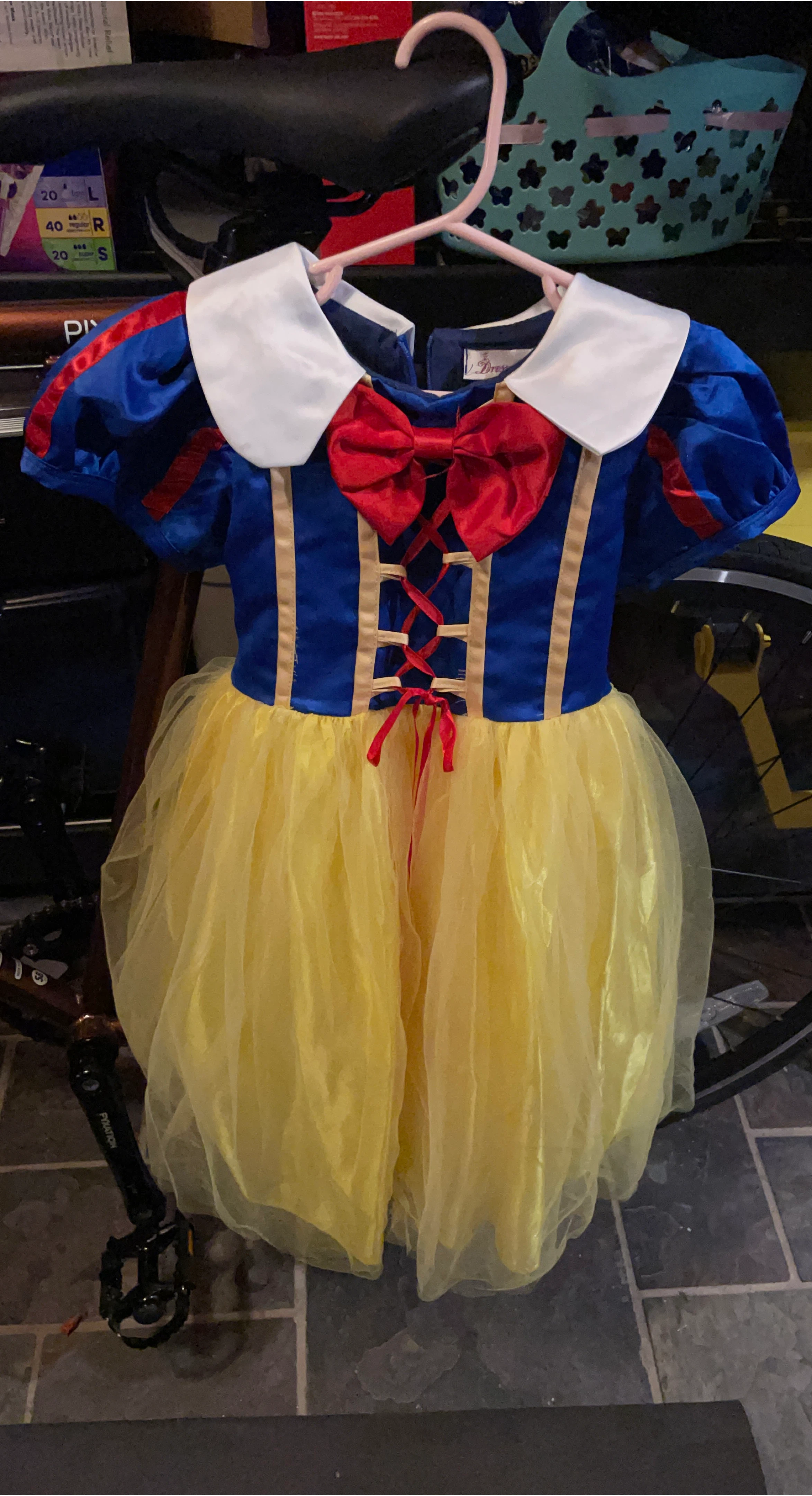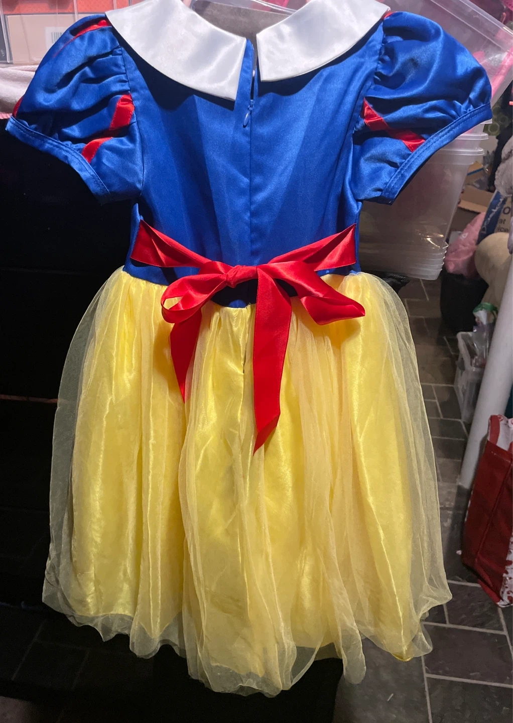 Adorable Snow White dress in size 3! It's in great condition and perfect for dress-up or a special occasion. The dress features the classic Snow White colors, a white collar, and a red bow. Your little one will love twirling around in this dress!
