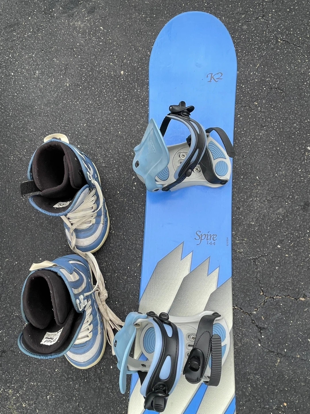 Selling a used K2 Spire 144 snowboard 56 inches length Also included are snowboard boots size 7 and bindings. You can use any boots size Great set for hitting the slopes!