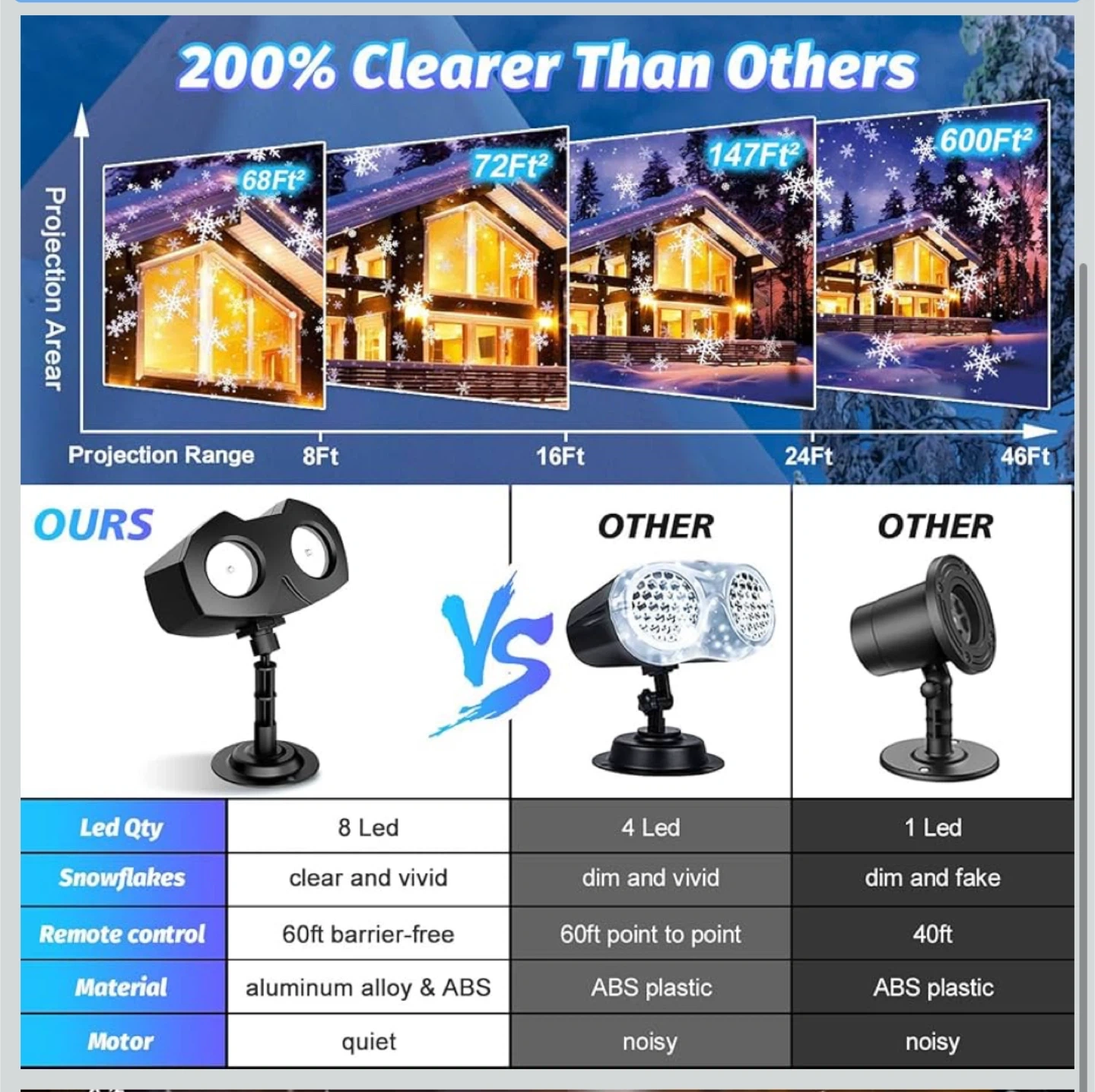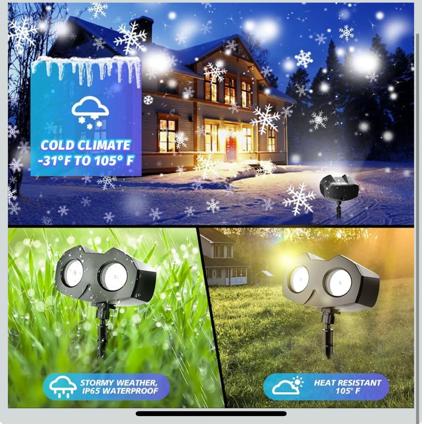 172Dual-Head Christmas Outdoor Snowflake Projector, Ocean Wave Red and Green Projector Star Dots Light IP65 Waterproof with Remote Control Timer Christmas Gift Home Garden Party Xmas Decor