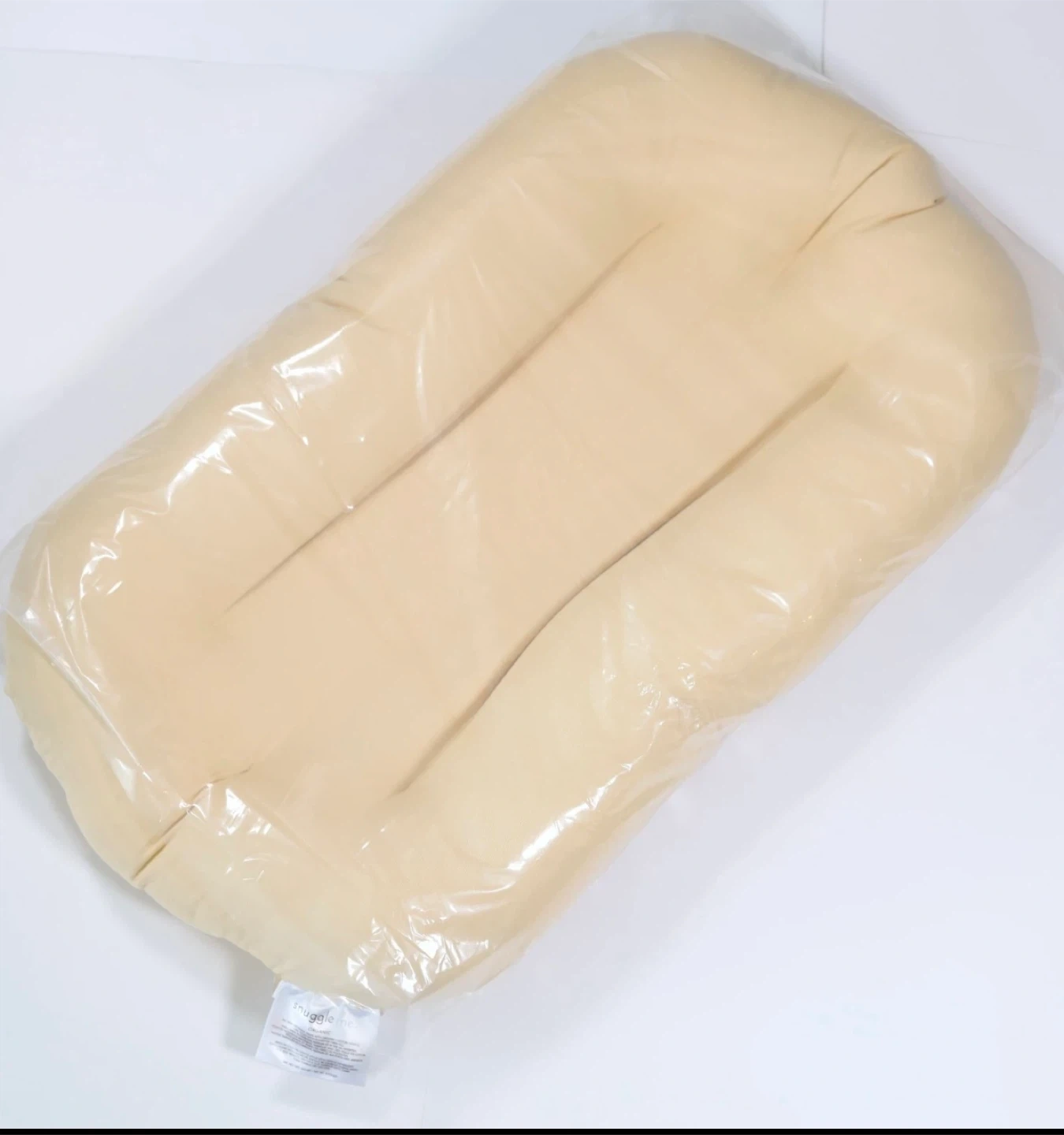 52Selling a Snuggle Me Organic infant lounger. It's made with organic cotton fabrics and filled with polyester fiber fill. The shell is made in Cambodia and assembled in the US. Care instructions: Wash in cold on gentle cycle with gentle detergent. Top loaders with agitators should be disabled during wash. For best results, dry on a flat surface until damp, then tumble dry on low
