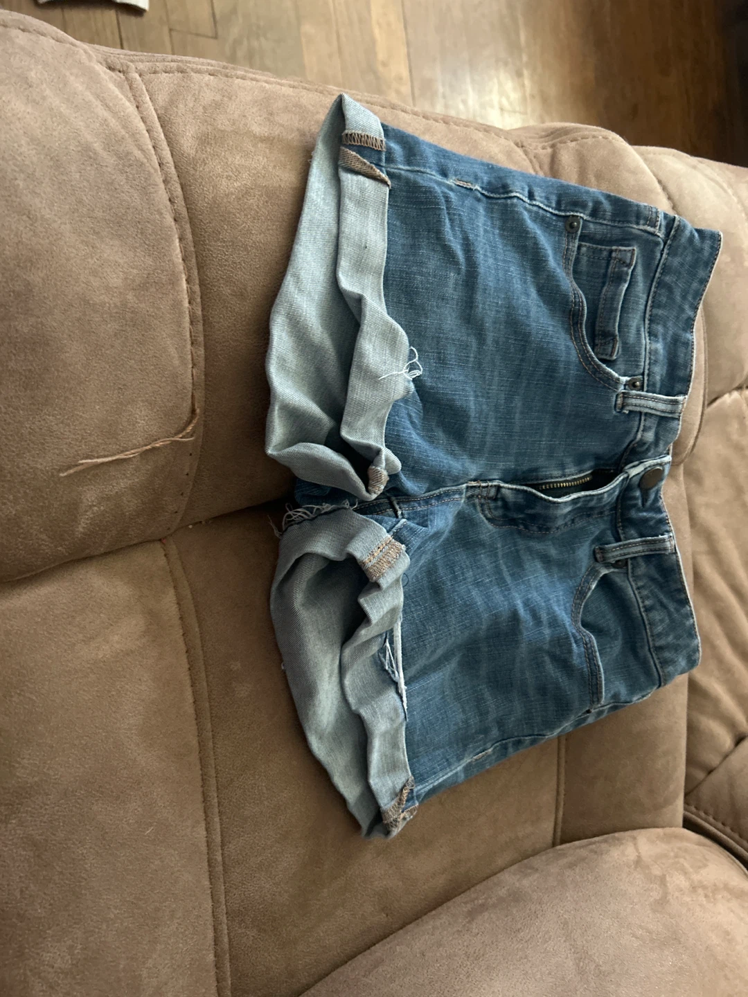 Casual blue denim shorts with a cuffed hem. Made from a cotton blend for comfort. These shorts are perfect for warm weather! They're a great addition to any summer wardrobe.