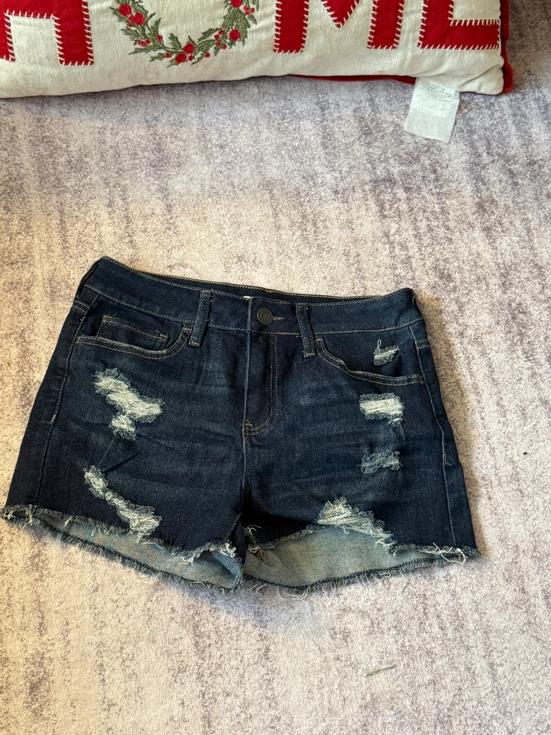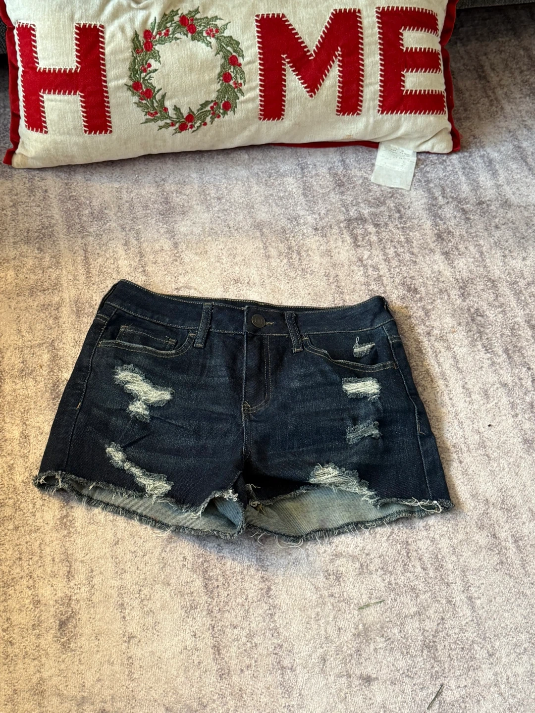60Selling a pair of distressed denim shorts! These are a size 11 and have a cool, worn look with the distressed details. Perfect for casual wear and adding a bit of edge to your outfit
