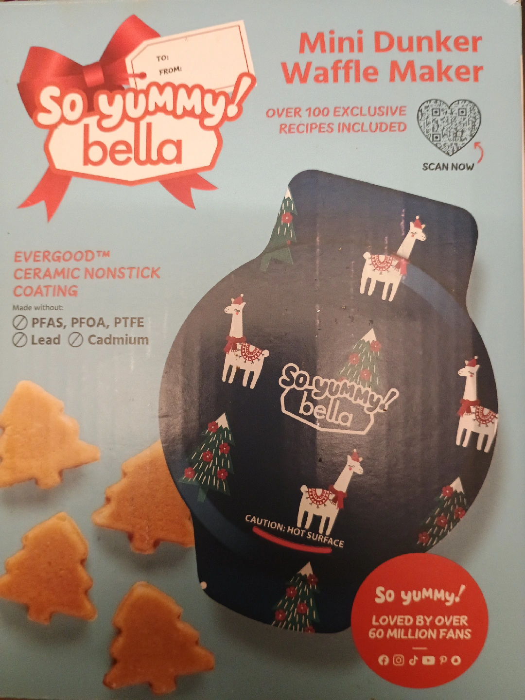 I'm selling a So Yummy! Bella Mini Dunker Waffle Maker. It features an Evergood ceramic nonstick coating and includes over 100 exclusive recipes. It's loved by over 60 million fans!