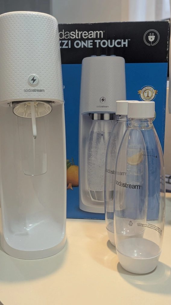 Selling a Sodastream Fizzi One Touch sparkling water maker. It's unused and comes with two bottles. Enjoy making your own sparkling water at home!