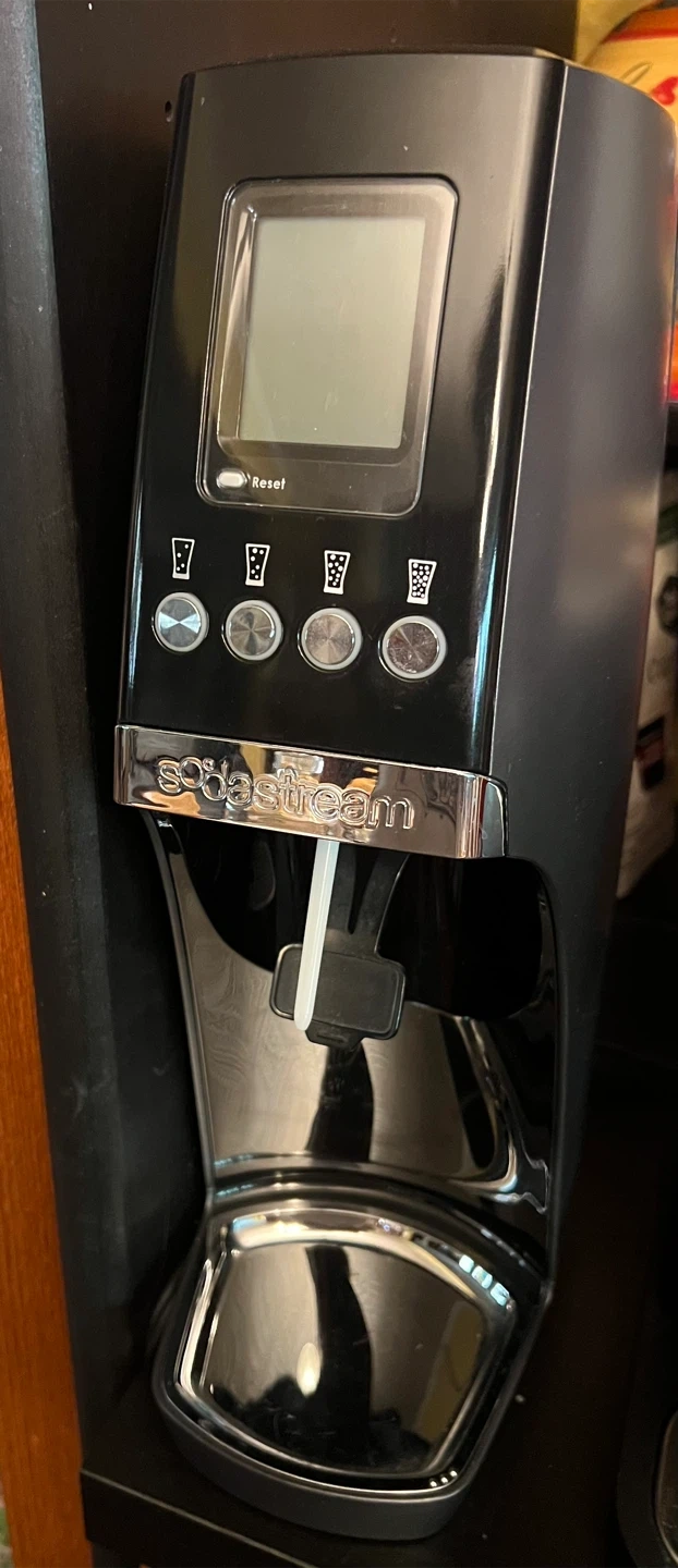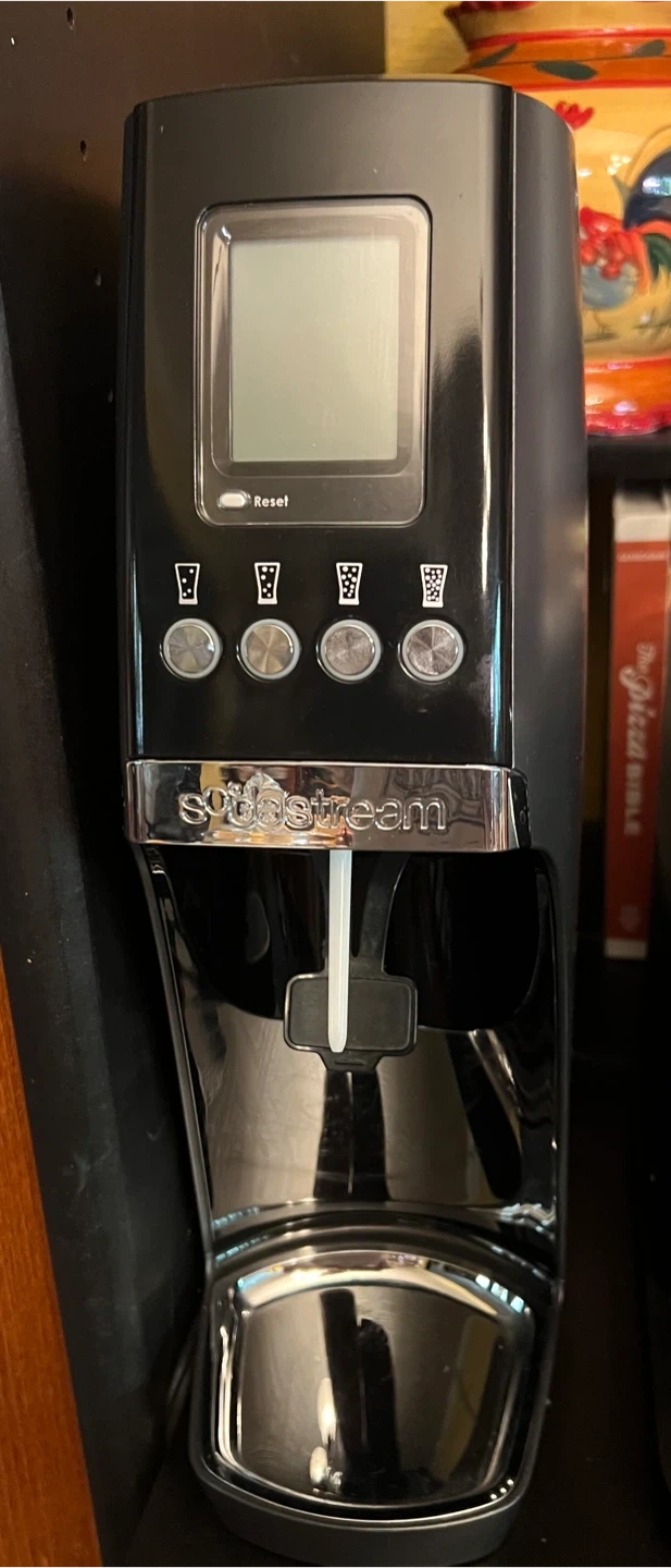 I'm selling a black and silver SodaStream sparkling water maker! It's in great condition and ready to make bubbly drinks. It has four different settings for the level of carbonation you want. It's a fun and easy way to make your own sparkling water at home. Excellent condition. Bottle included.
