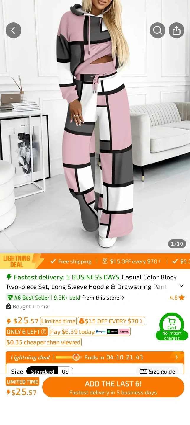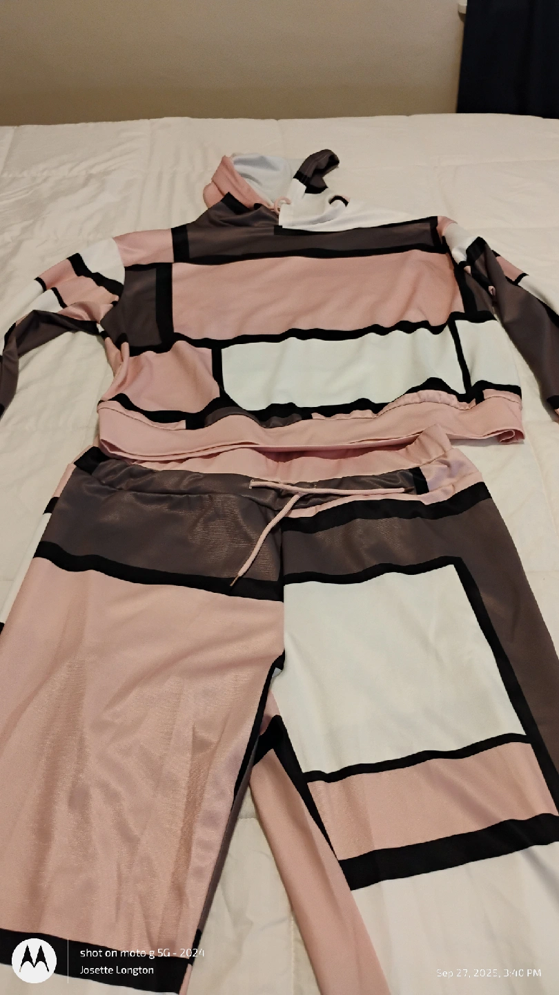 Selling a cute comfy clothes casual color block two-piece set! It features a long sleeve hoodie and drawstring pants. The set is a size standard and has a unique color block design