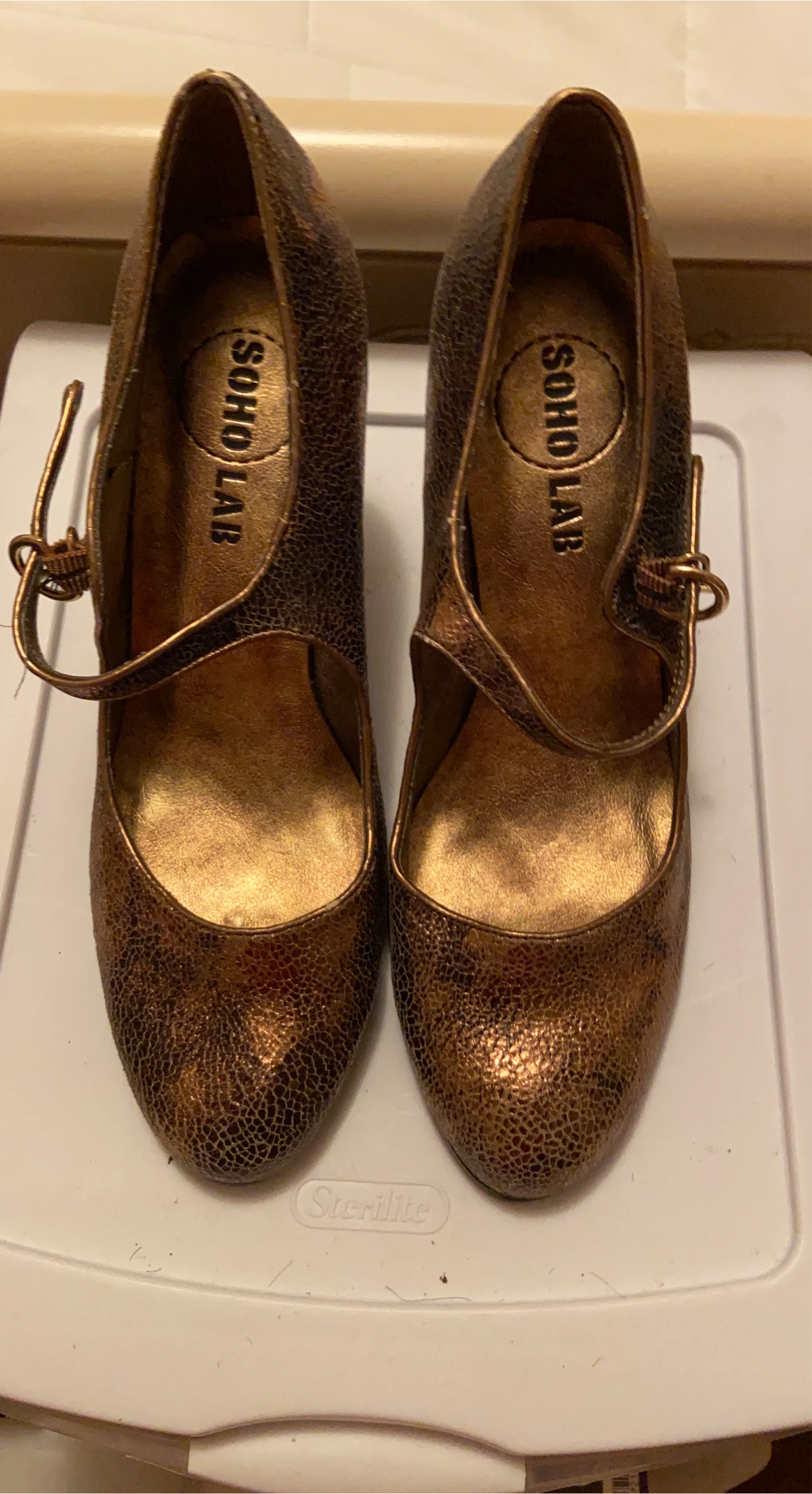 10These are a pair of bronze-colored heels from Soho Lab! They have a unique texture and a stylish strap detail. Perfect for adding a touch of elegance to any outfit