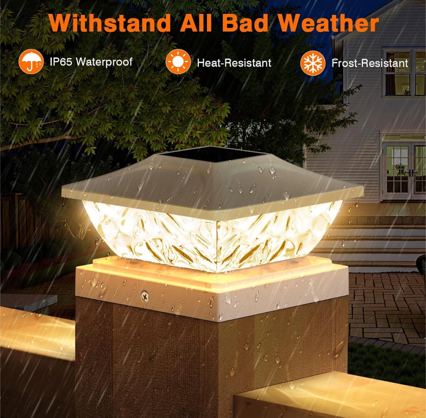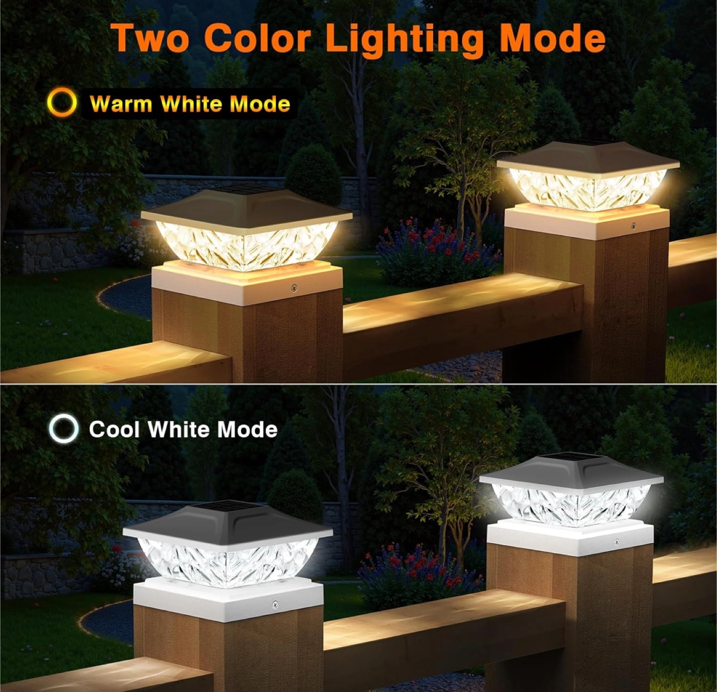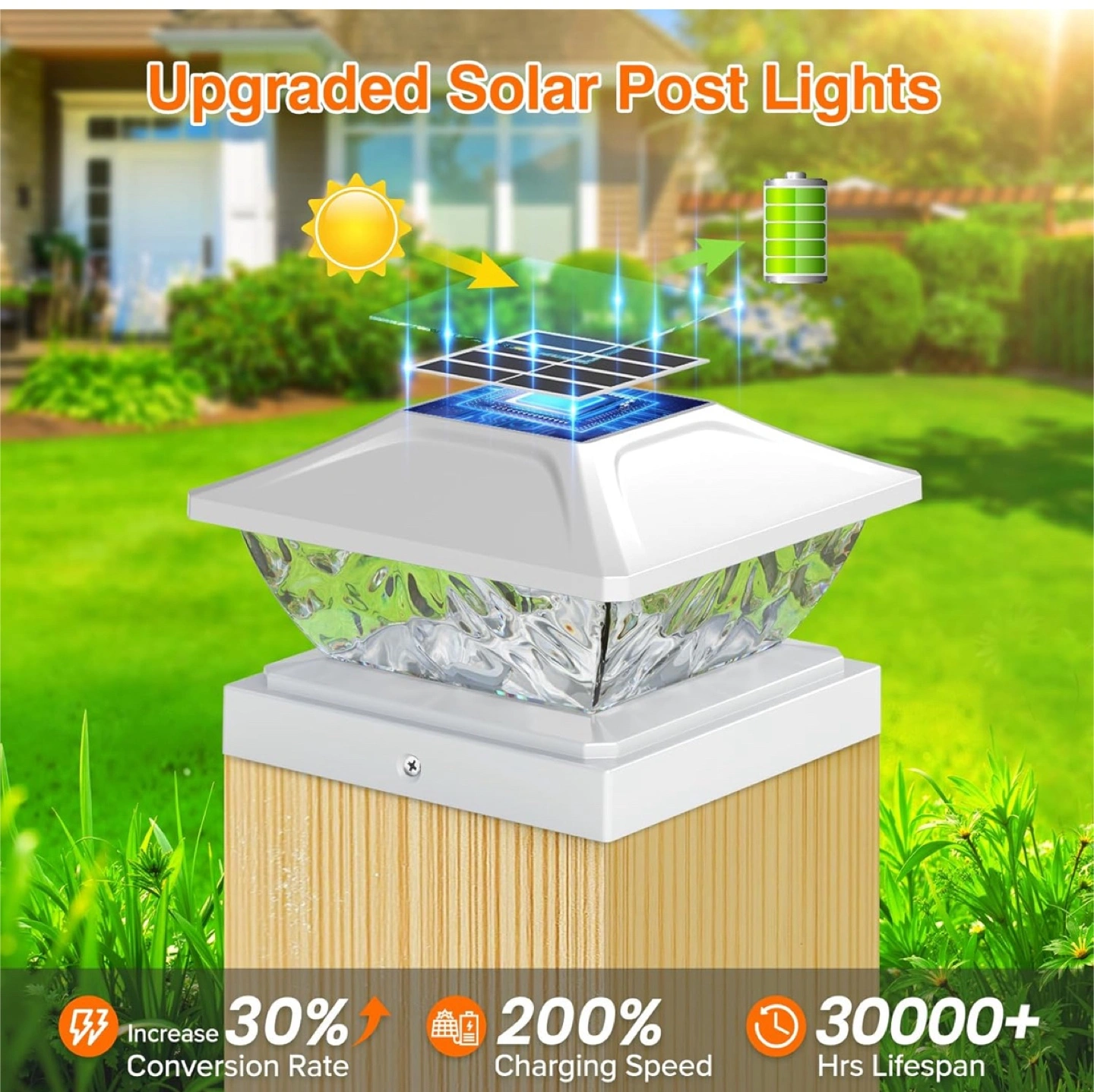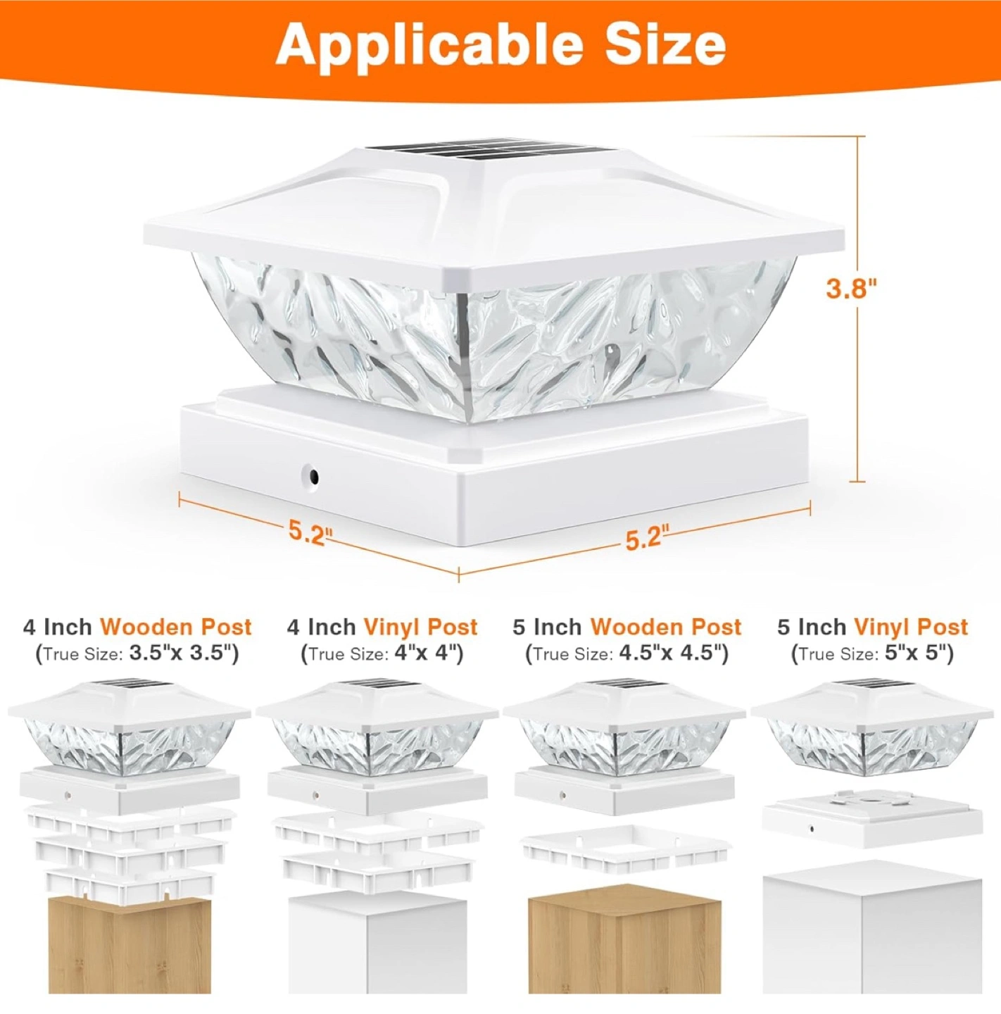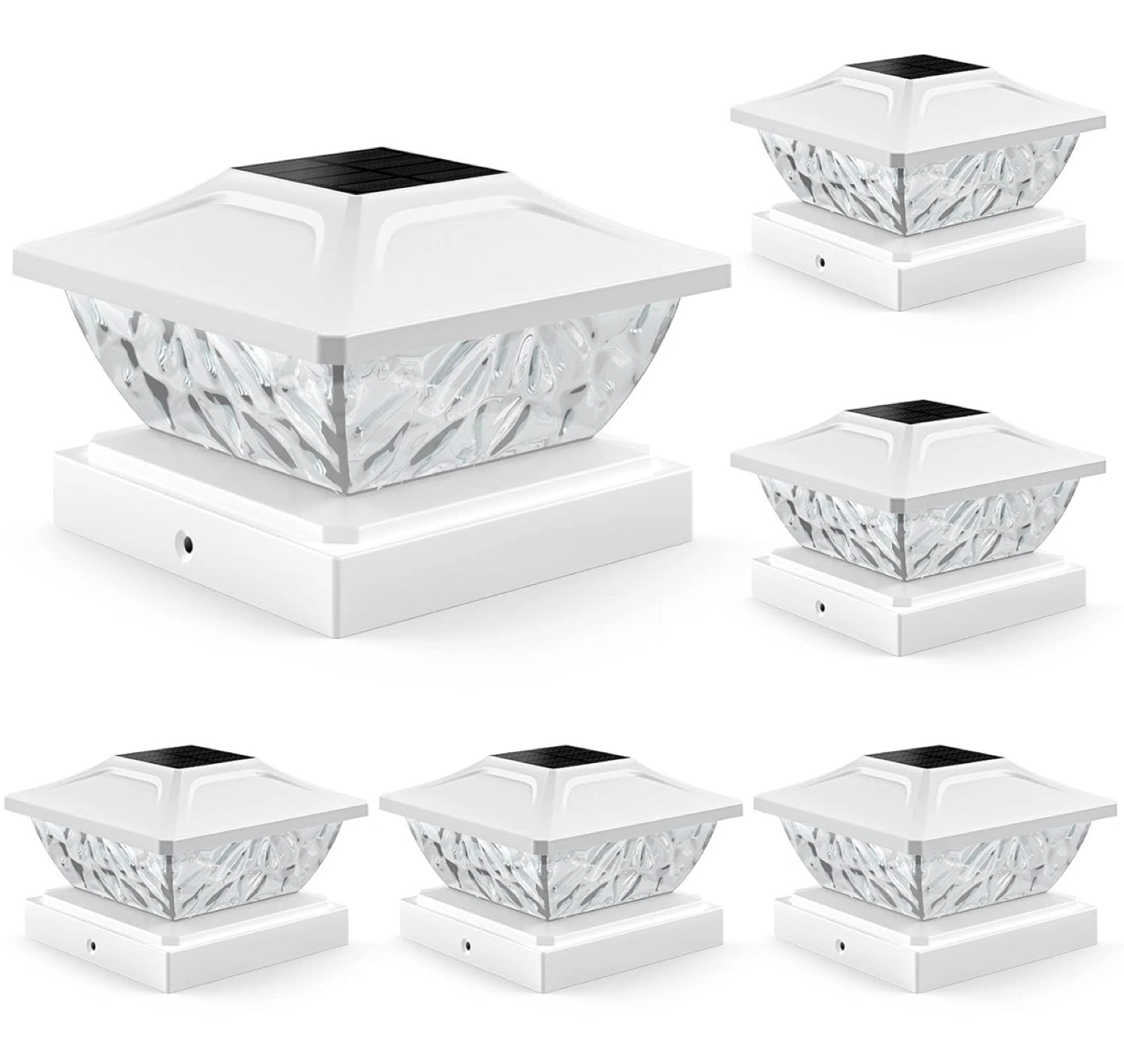 Solar Post Cap Lights Outdoor 6 Pack, 2 Mode Bright Fence Post Solar Lights Outdoor Waterproof, Deck Fence Post Cap Light Solar Powered for 4x4 4.5x4.5 5x5 Posts in Garden