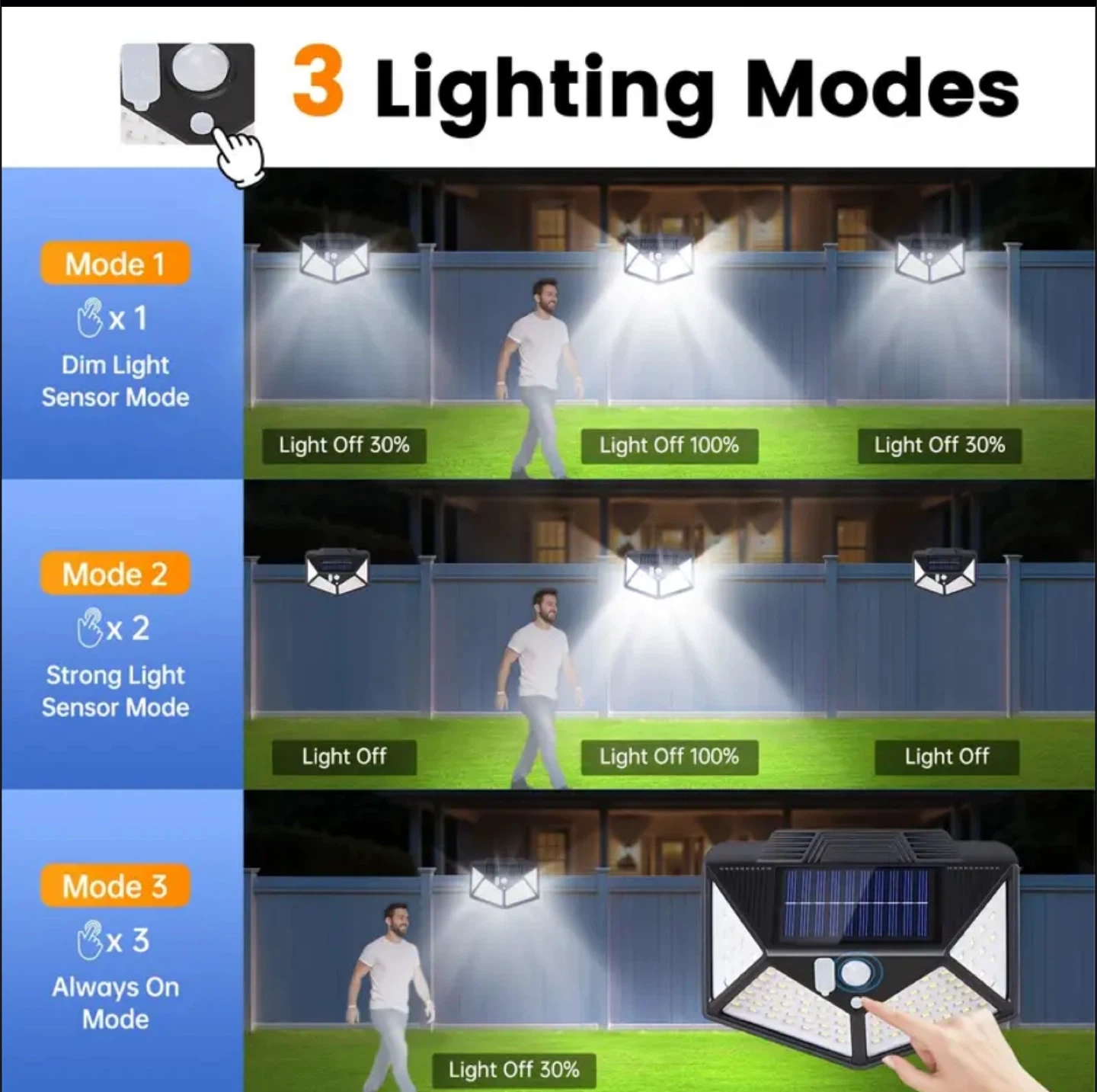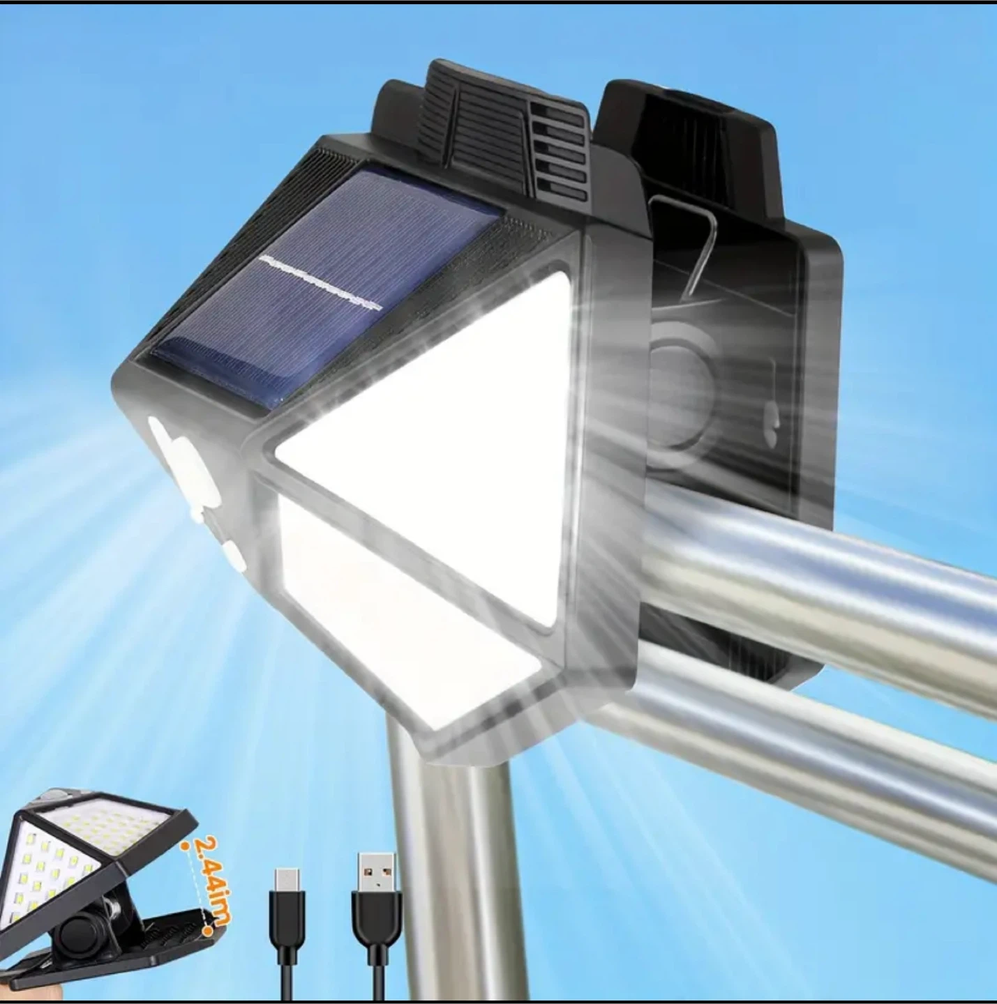 1-Pack Solar Motion Sensor Outdoor Light, IP65 Waterproof Clip-On Solar Light with 3 Modes and USB Charging Function, 10-Hour Auto Illumination