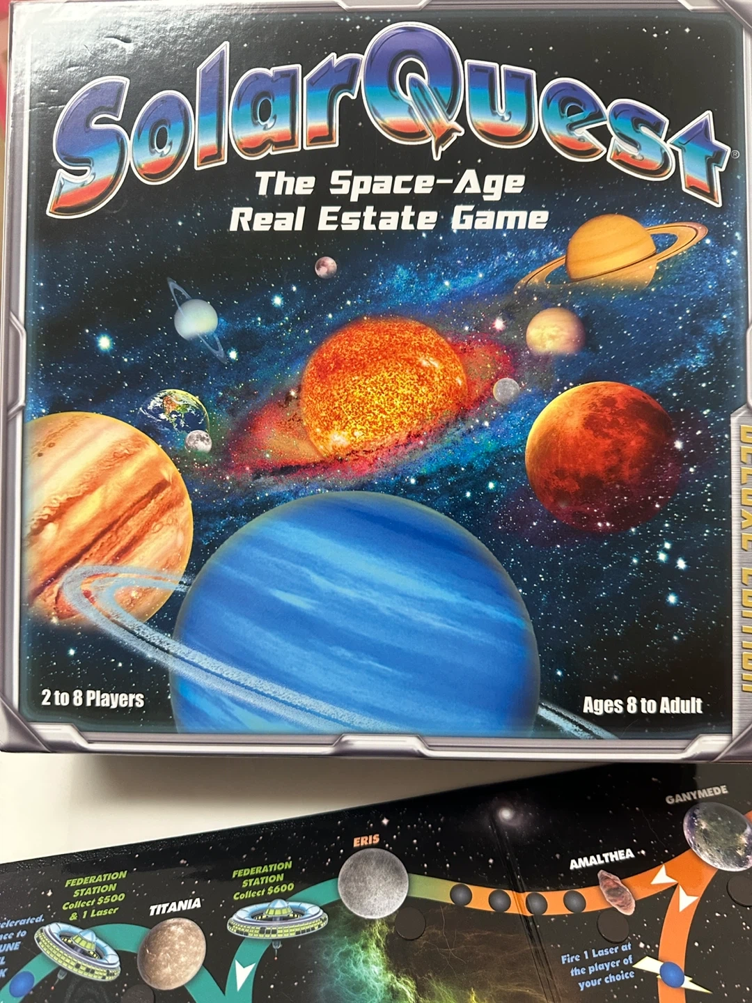 Selling the SolarQuest board game! It's the Deluxe Edition and comes with everything you need for a space-age real estate adventure - For 2 to 6 players - Recommended for ages 8 to adult