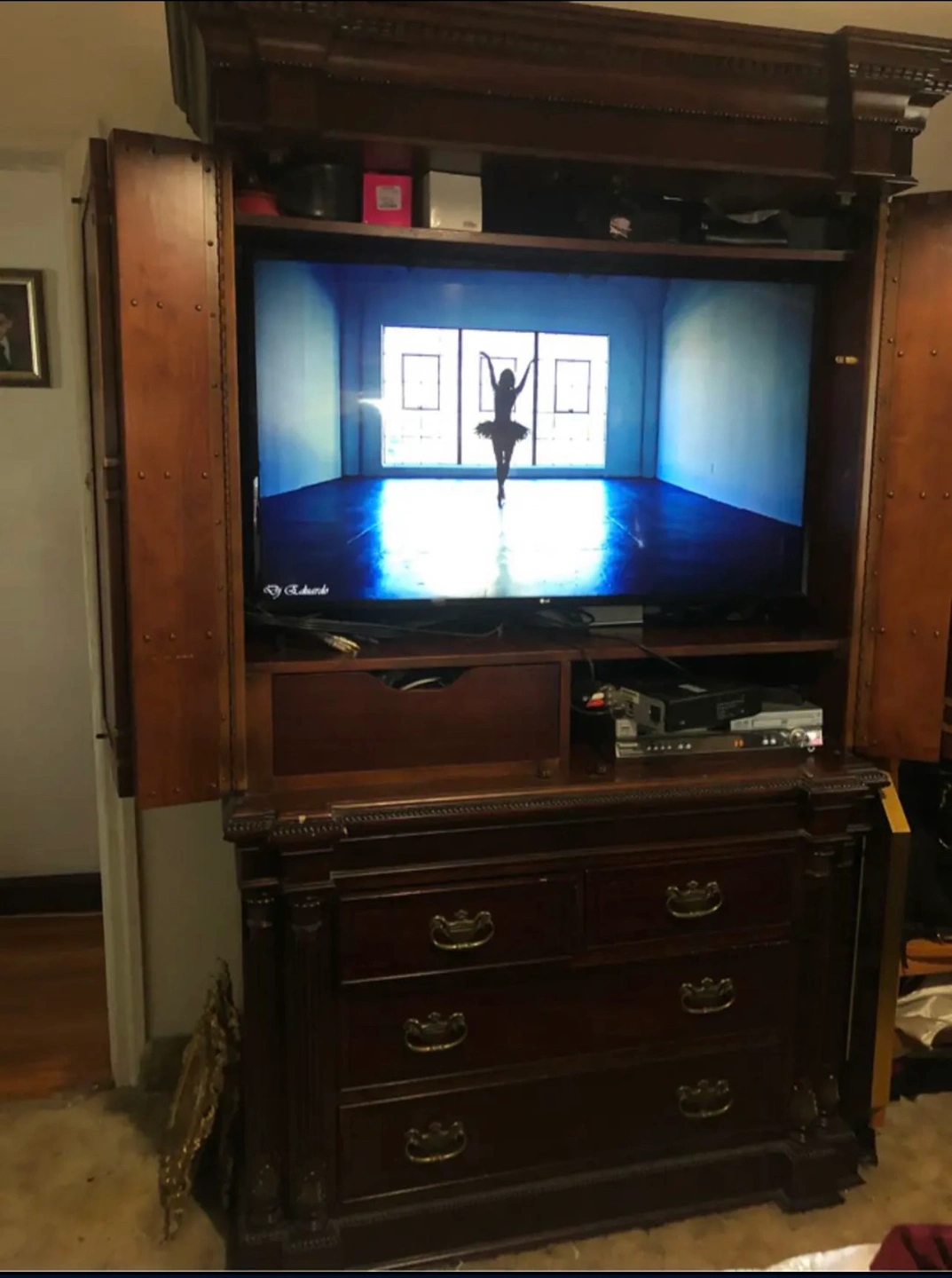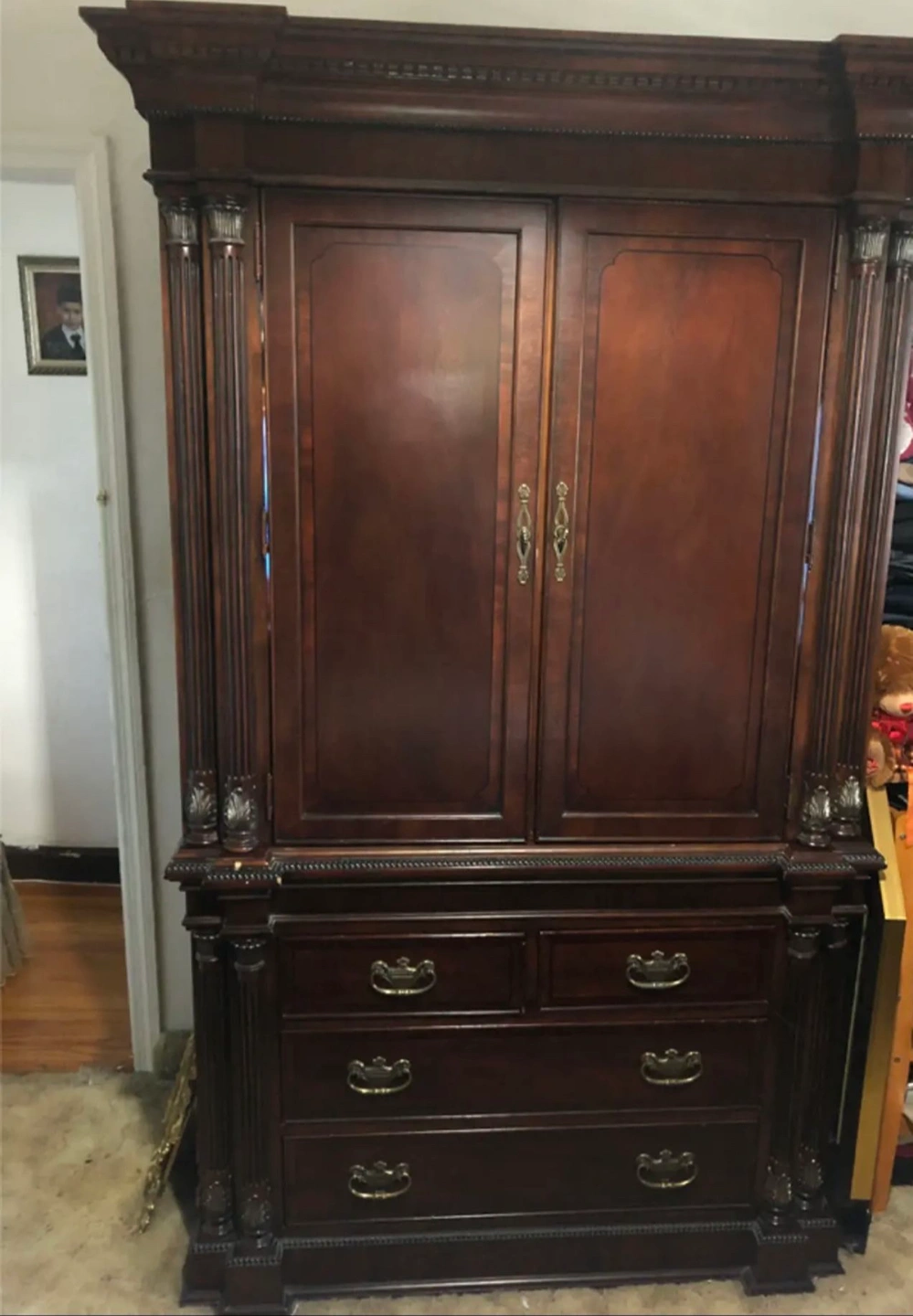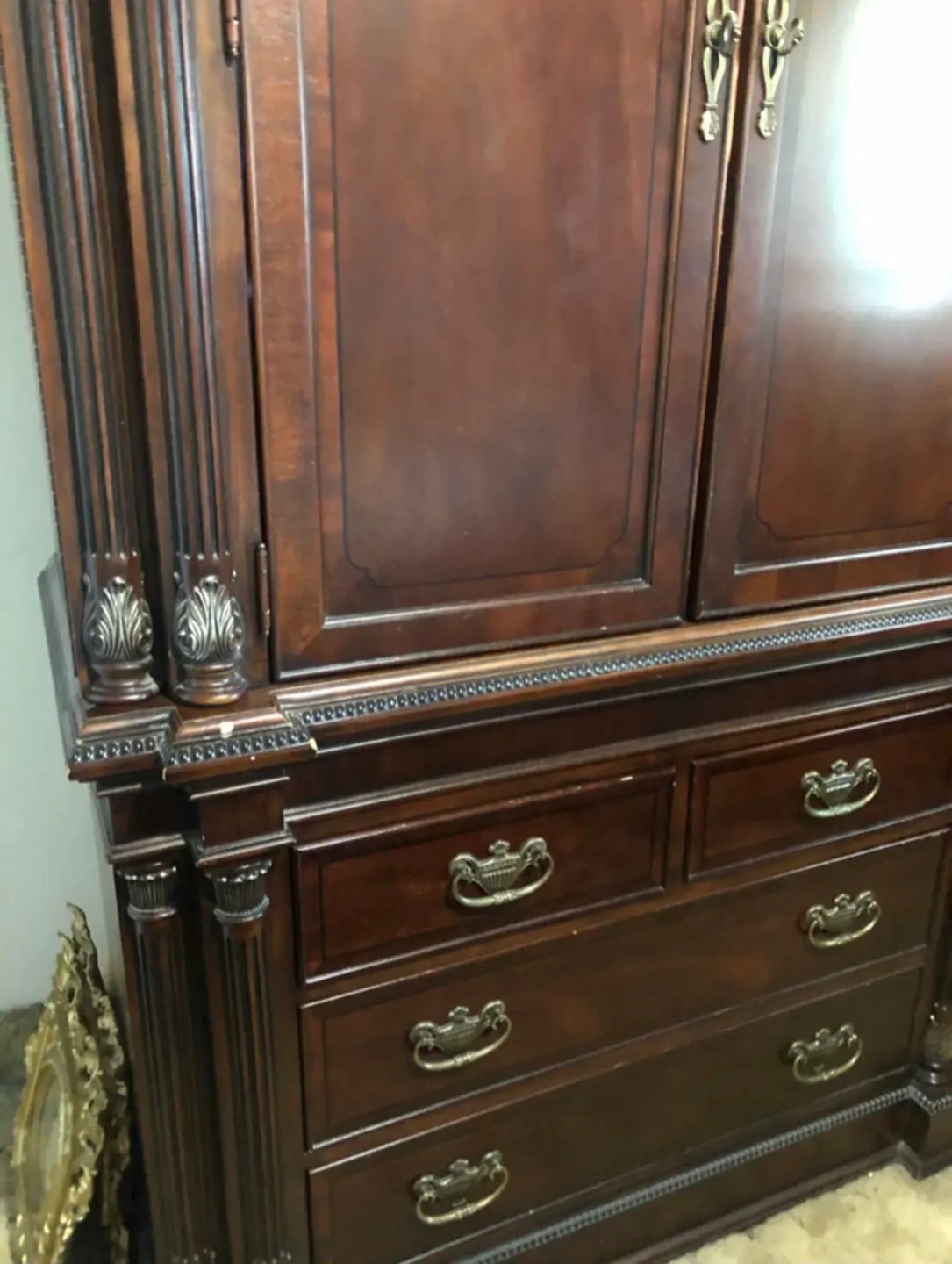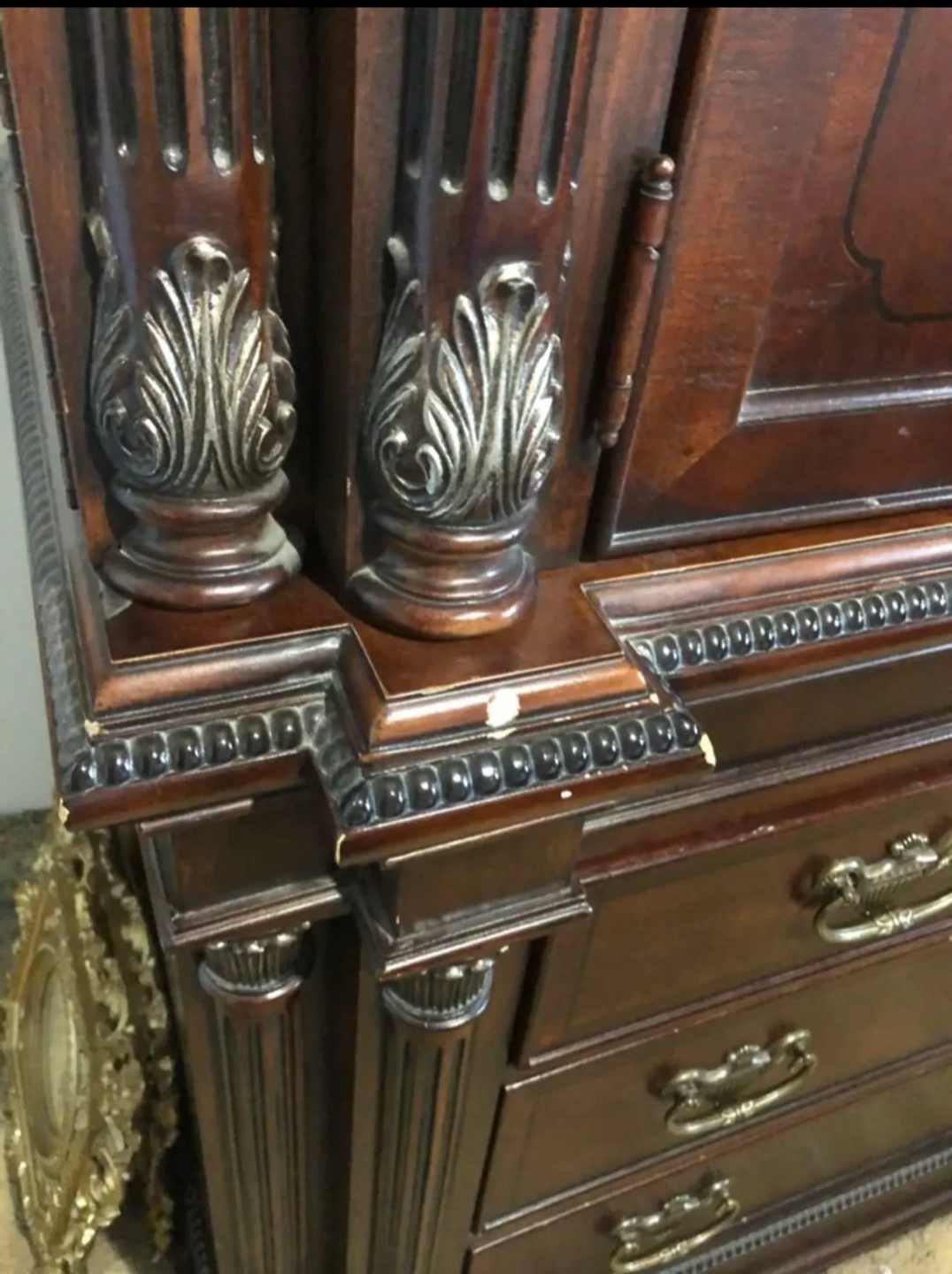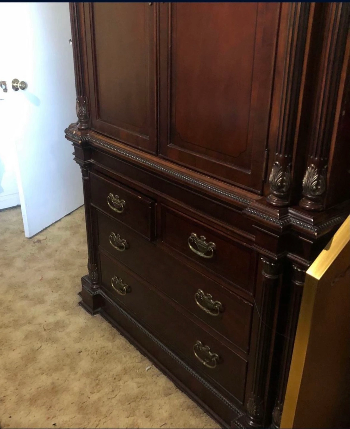 25Pre love few scratches use for tv about or hung cloths has a lot of storage the perfect piece for your bedroom I have side tables too and a different listing lmk if you want them to give you a very good price any questions don’t hesitate to ask.