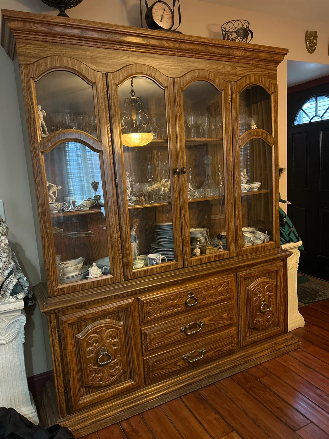 10Selling a beautiful wooden china cabinet! It features glass doors on the upper section and drawers and cabinets on the lower section. Perfect for displaying your fine china or storing your dining essentials