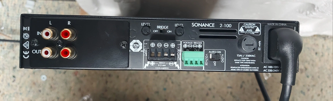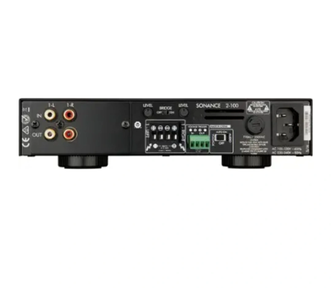 65Sonance Sonamp 2-100 Amplifier - 100W 2.0 Ch. Amplifier for Home Audio & Multi Room Systems Black Model: 93091 Distributed audio amplifier with flexible power Delivers 100W per channel into 8Ω or 156W into 4Ω, with 325W bridged output, ideal for versatile installations across small and mid-sized zones Home audio distribution amplifier efficiency With quiet Class-D power and auto-on functionality, this amp blends easily into any room or rack while offering quick, tailored setup Multi zone amplifier with clean integration Unbalanced RCA loop outputs allow daisy-chaining multiple amps, while rear-panel level controls simplify tuning for each audio zone Rack-ready and installation-friendly Half-rack width with optional bracket allows dual-mounting in a 1U space; fits tight media closets or utility rooms with minimal heat buildup Efficient design for zone-based systems Class-D power, auto-on triggers, and pass-through RCA outputs simplify multi-amp setups, ideal for integrators building efficient, zone-based systems " Firm on Price " Used CERTIFIED with WARRANTY EASY FINANCING AVAILABLE