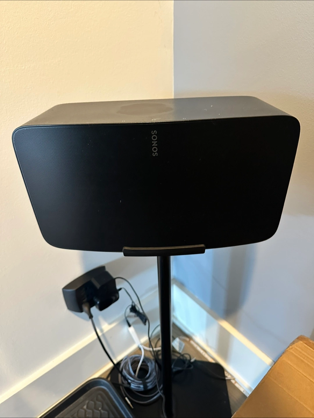 Experience studio-quality sound with the Sonos Five, Sonosβs most powerful wireless speaker. Whether youβre streaming music, watching movies, or hosting a party, the Five delivers rich bass, crystal-clear highs, and room-filling sound. Key Features: β’ π₯ Deep bass, ultra-wide soundstage, and detailed stereo separation β’ π§ Line-in port for turntables, TVs, and more (3.5mm aux) β’ π± WiFi-enabled β stream with Apple AirPlay 2, Spotify, Amazon Music, etc. β’ π§ Smart and easy to use β pairs with the Sonos app and other Sonos speakers β’ π¨ Sleek, minimalist design (available in Black or White) β’ π‘ Works with Sonos S2 platform Condition: Excellent / Like New β fully tested and works perfectly. Comes from a smoke-free, pet-free home. Why Iβm selling: Moving out of country - downsizing! π Includes power cable and Sonos Five Stand Pickup Chicago β can demo before you buy. Feel free to message with any questions!