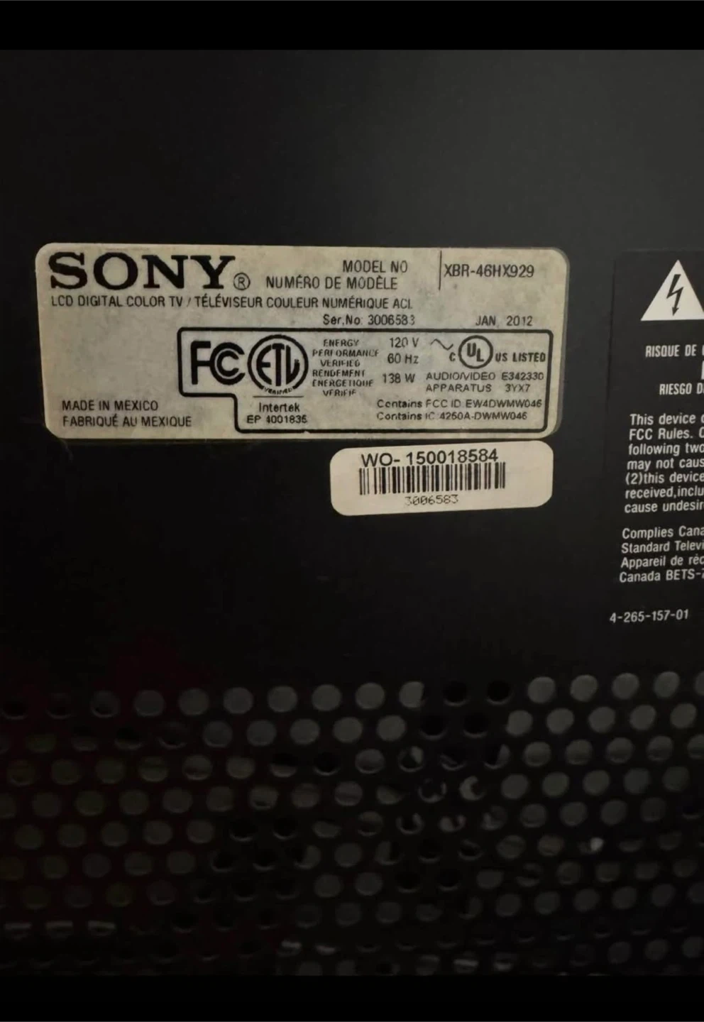 10Selling a Sony Bravia 46-inch LCD Digital Color TV, model number XBR-46HX929. It's in good condition and ready for a new home! Feel free to reach out with any questions
