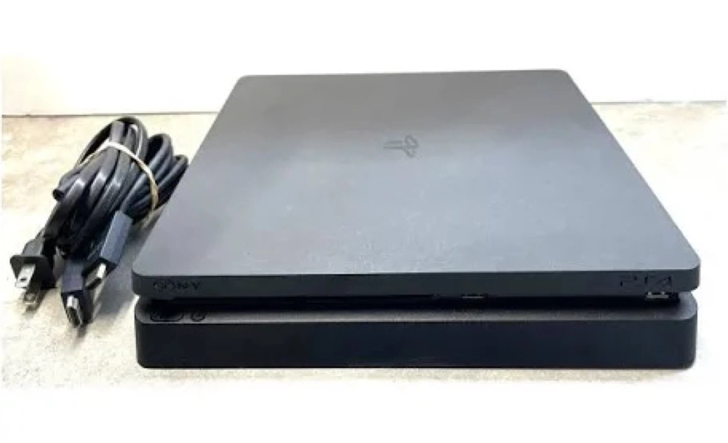 10Selling a PlayStation 4 Slim in black! It's in great condition and ready for a new home. Only selling the game and the gaming cords. NOT THE CONTROLLER