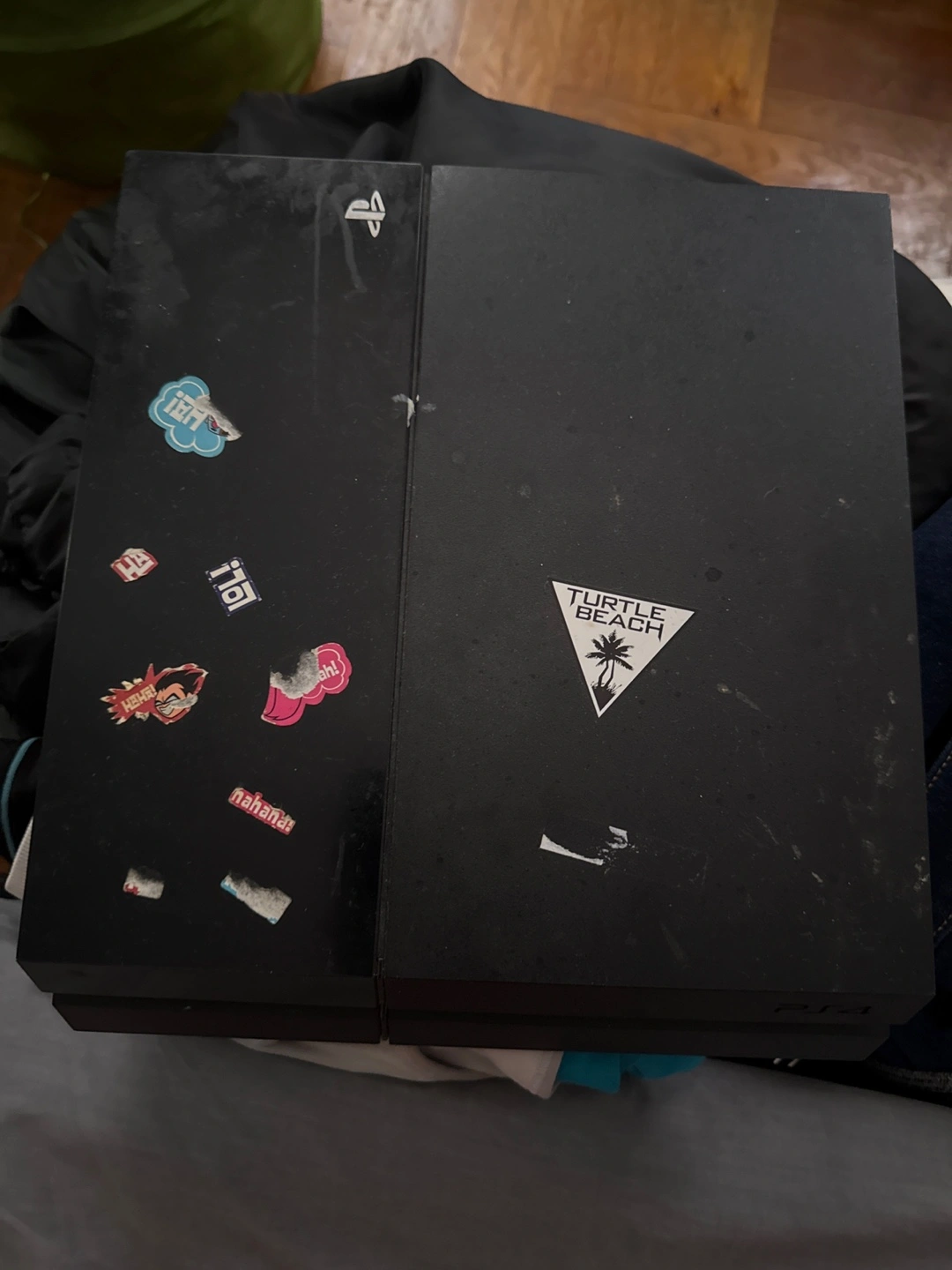 Selling a used PlayStation 4. It shows signs of wear and has stickers on it, as you can see in the pictures. (Comes with power cord and hdmi cord)