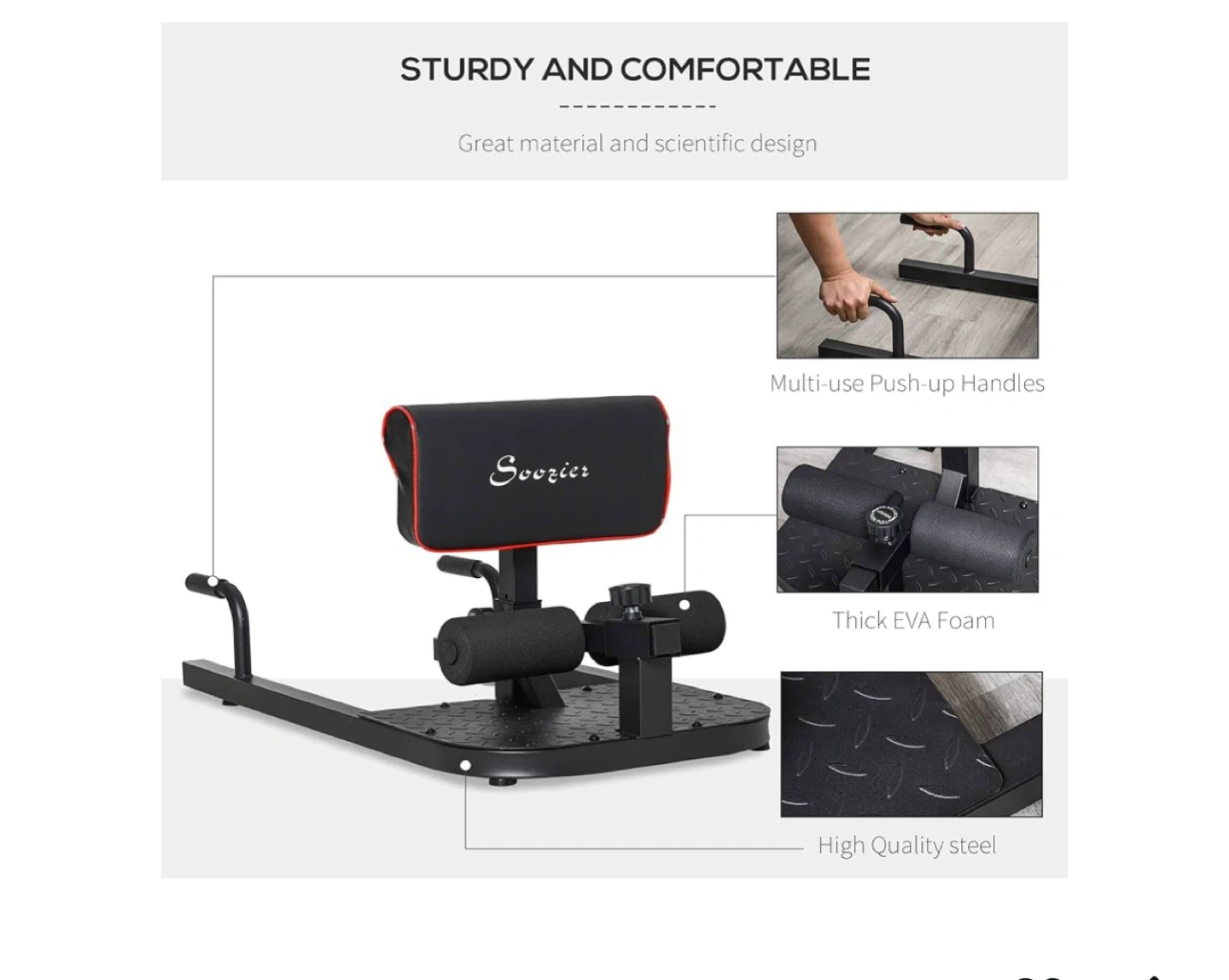 I'm selling a brand new Soozier Sissy Squat Machine, still in its original box! This sturdy and comfortable machine is designed with great material and scientific design. - Multi-use push-up handles - Thick EVA foam - High quality steel - Adjustable positions to suit different body types - Pad is 7 level adjustable - Ankle joints are 4 level adjustable