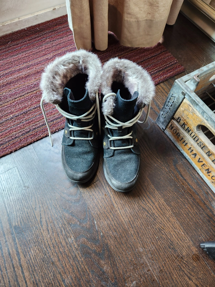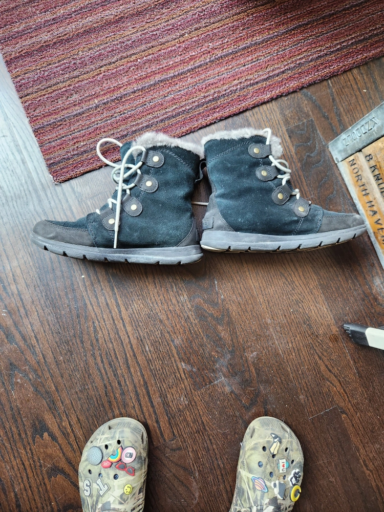 Selling a pair of Sorel women's winter boots, model number NL3039-010 in size 9. They are in good condition and ready to keep your feet warm this winter! Gently worn.