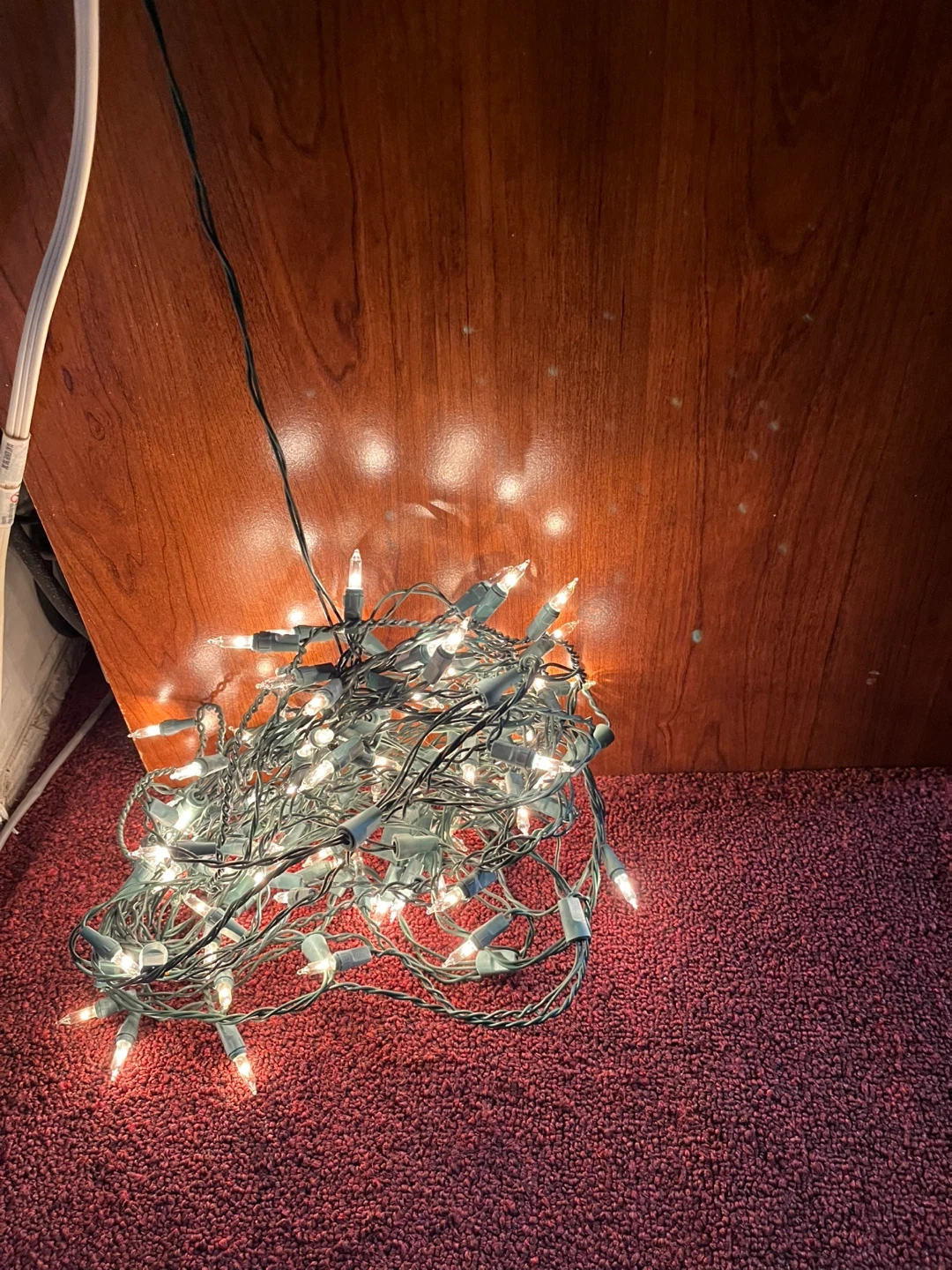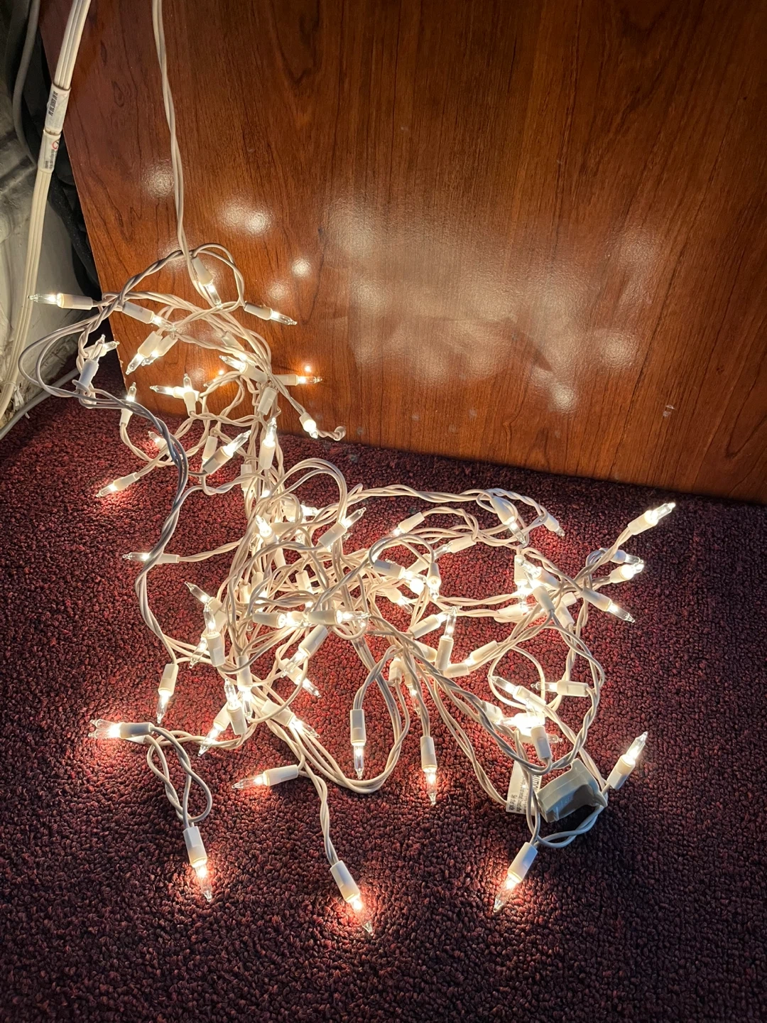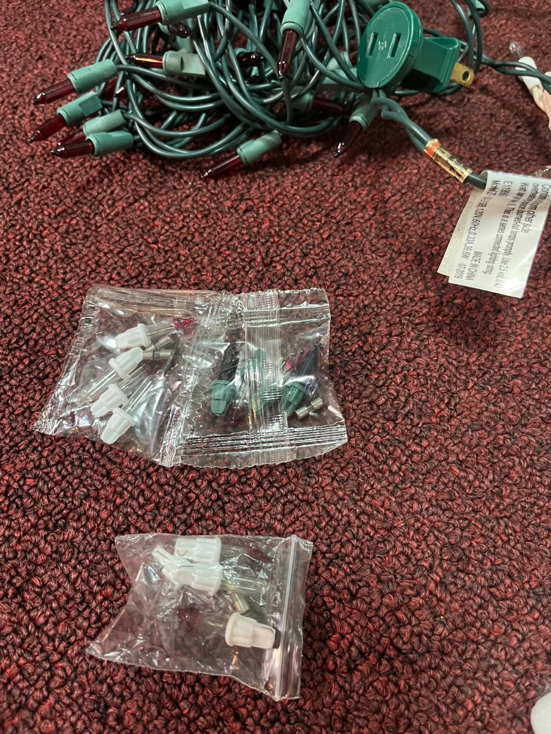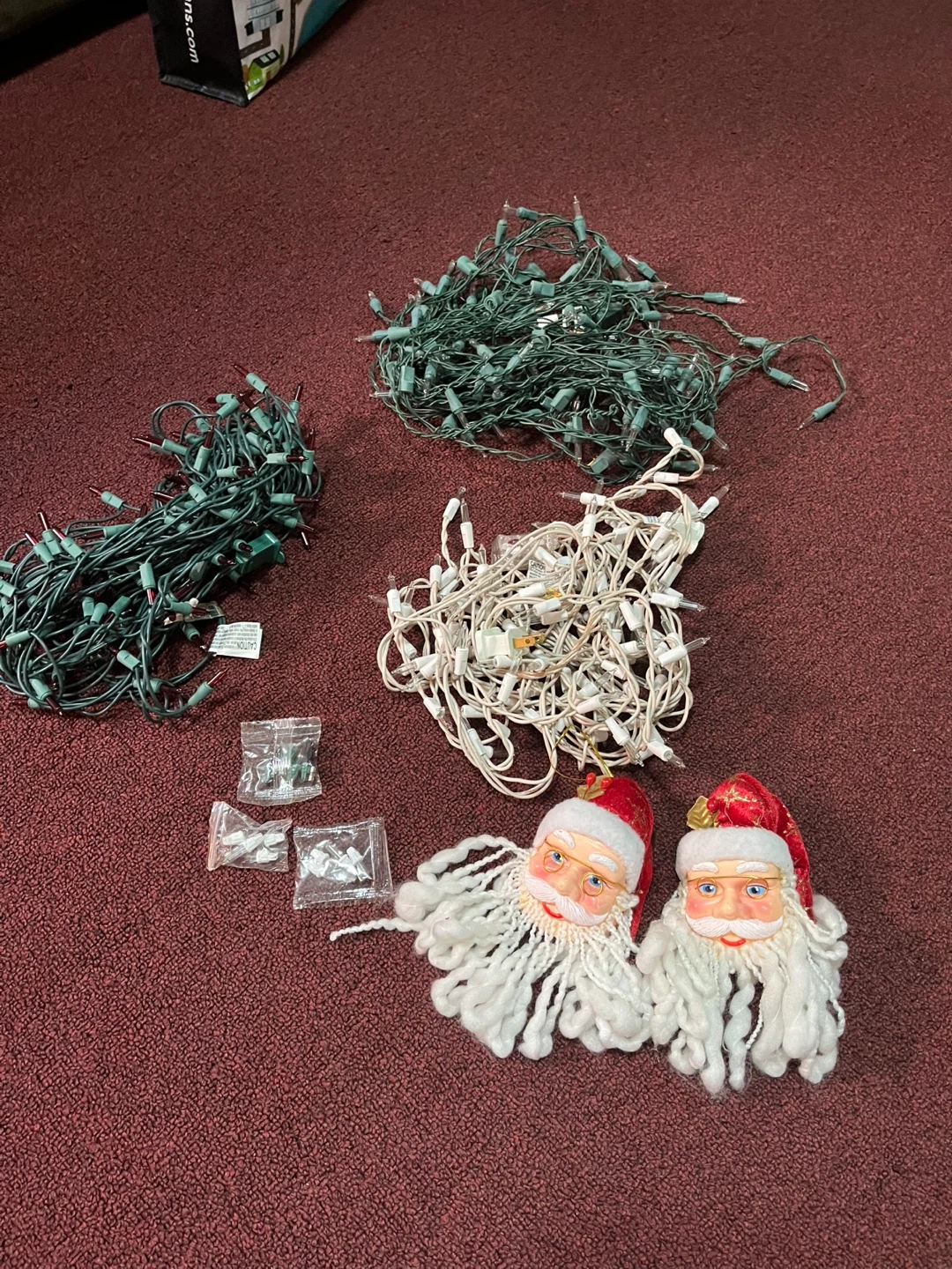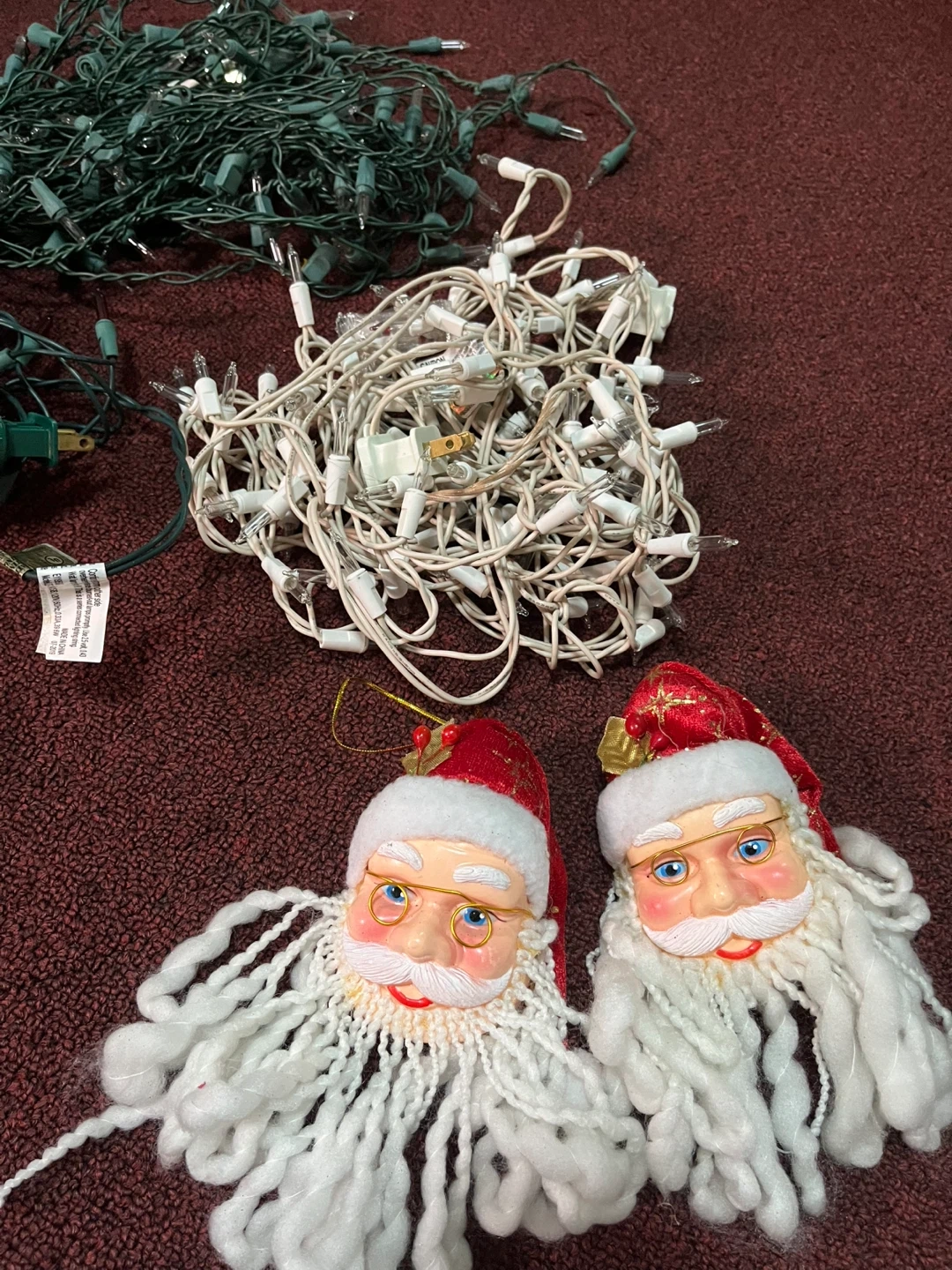 Selling a set of Christmas string lights and two Santa ornaments. The lights are
