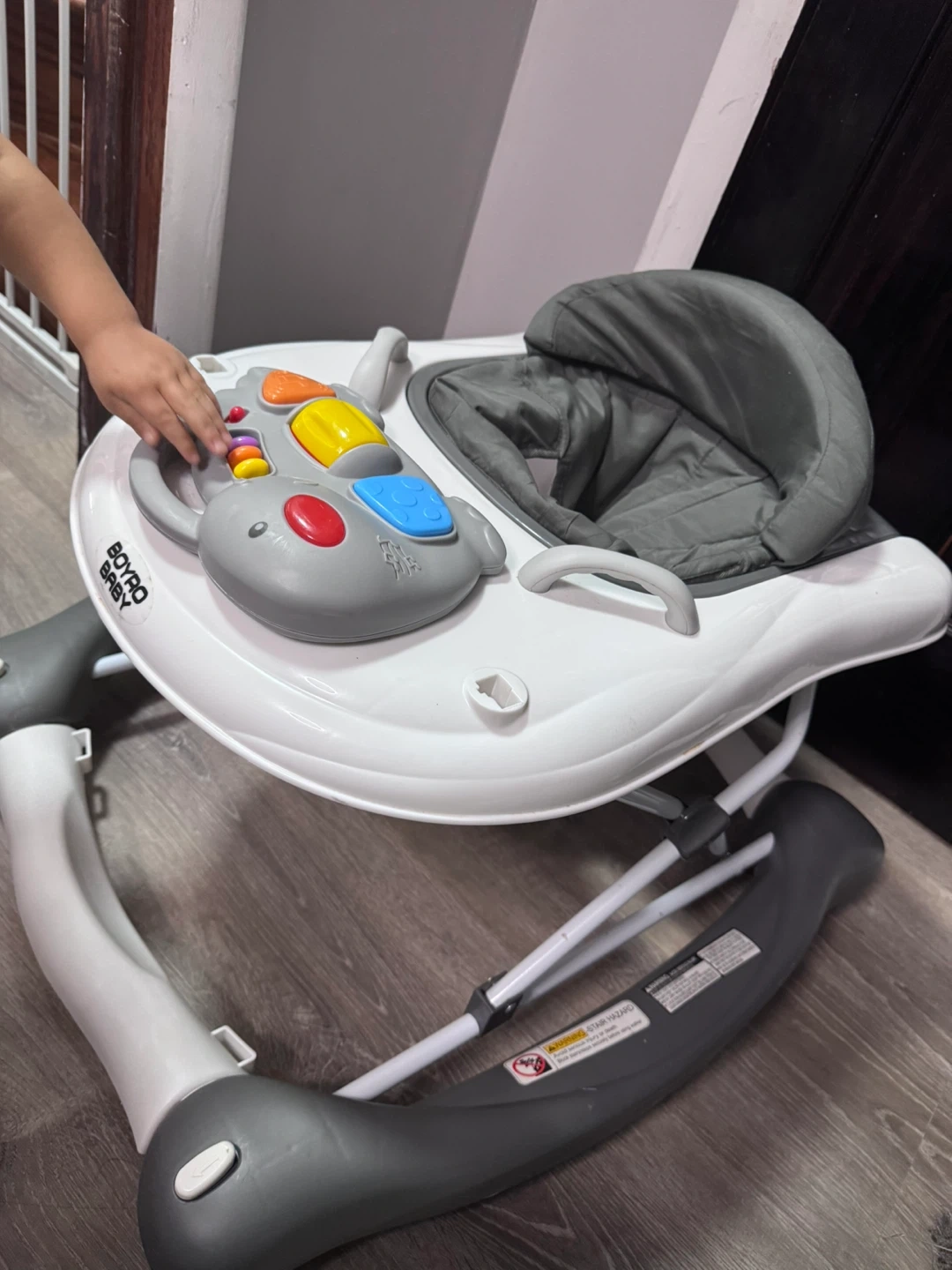 Selling a BOYRO baby walker in great condition! It's perfect for little ones learning to walk and explore. Features a fun elephant design with colorful buttons and interactive elements to keep your baby entertained