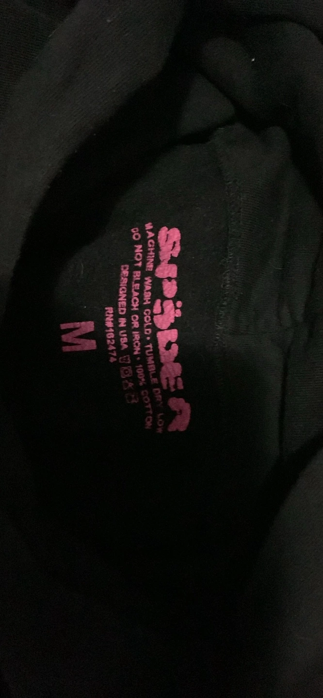 Selling a SP5DER hoodie in black, size medium. It's made of 100% cotton. The design fetures puff printed dots around the work “p*nk”.Please let me know if you have any questions!