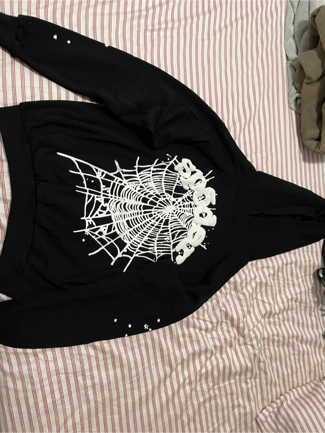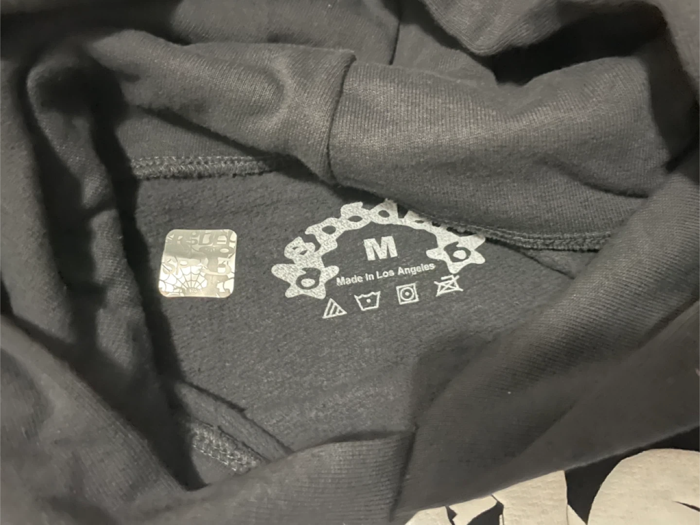 10Selling a black Sp5der hoodie in size medium. It features a spiderweb design on the back. Made in Los Angeles!