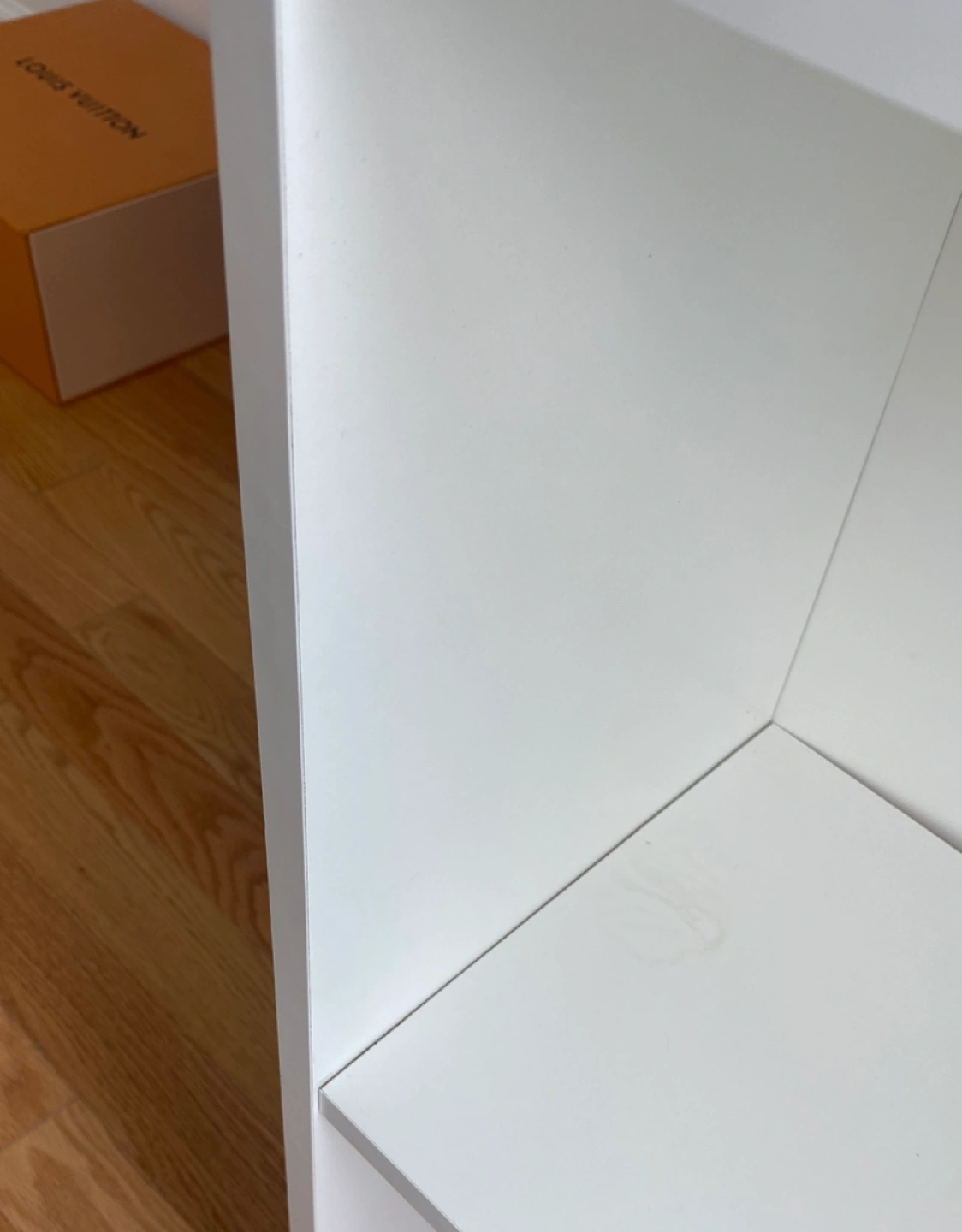 Please see the second photo: Minor stain on 4th shelf