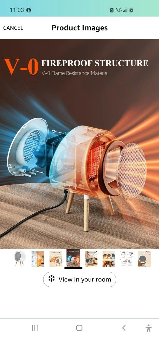 1000W Energy Efficient Space Heater for Indoor Use, 3 Mode PTC Fast Heating Ceramic Electric Heater, Overheating & 45°Tip-Over Protection Portable Heater for Office Home.