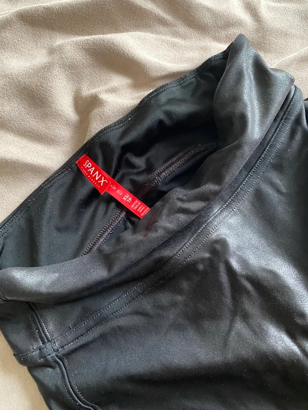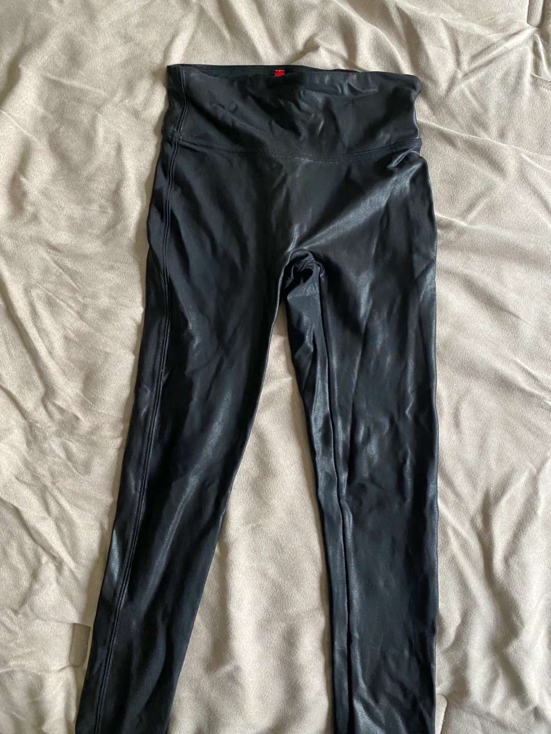 10Black faux leather leggings. High-waisted. Perfect for a night out or worn casually.