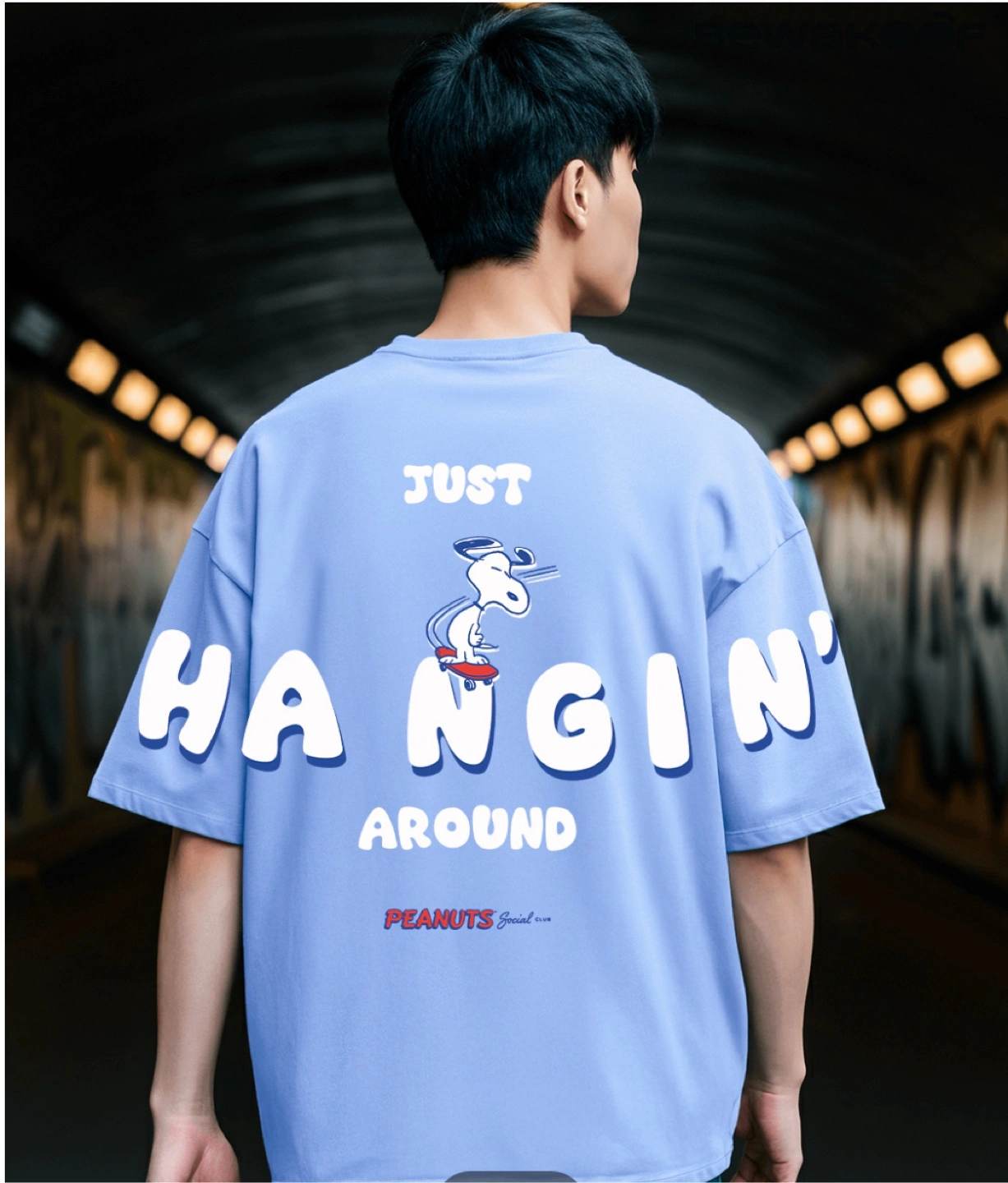 60I'm selling a SPAO x Peanuts Social Club T-shirt! It features Snoopy and the text 'Peanuts Social Club Since 1950' on the front, and Snoopy skateboarding with 'Just Hangin' Around' on the back. It's a fun and stylish piece for any Peanuts fan.