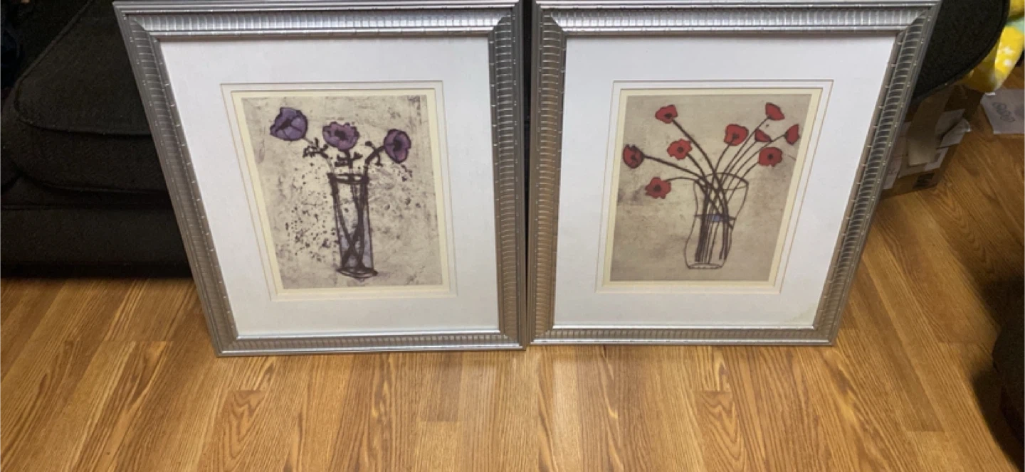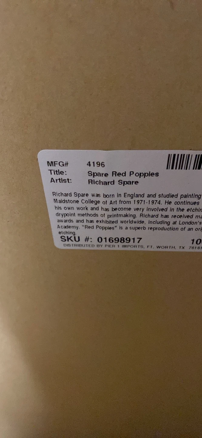 10Selling a set of framed art prints featuring Spare Red Poppies and purple flowers. The artist is Richard Spare. They're ready to add a touch of elegance to your home! From pier import