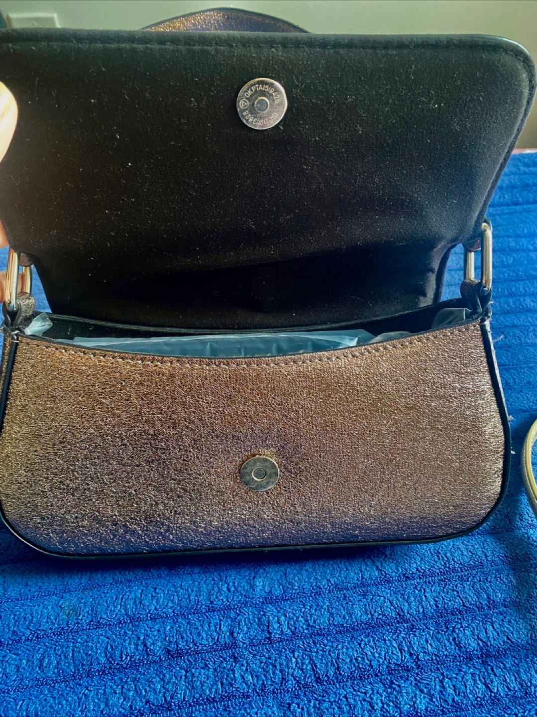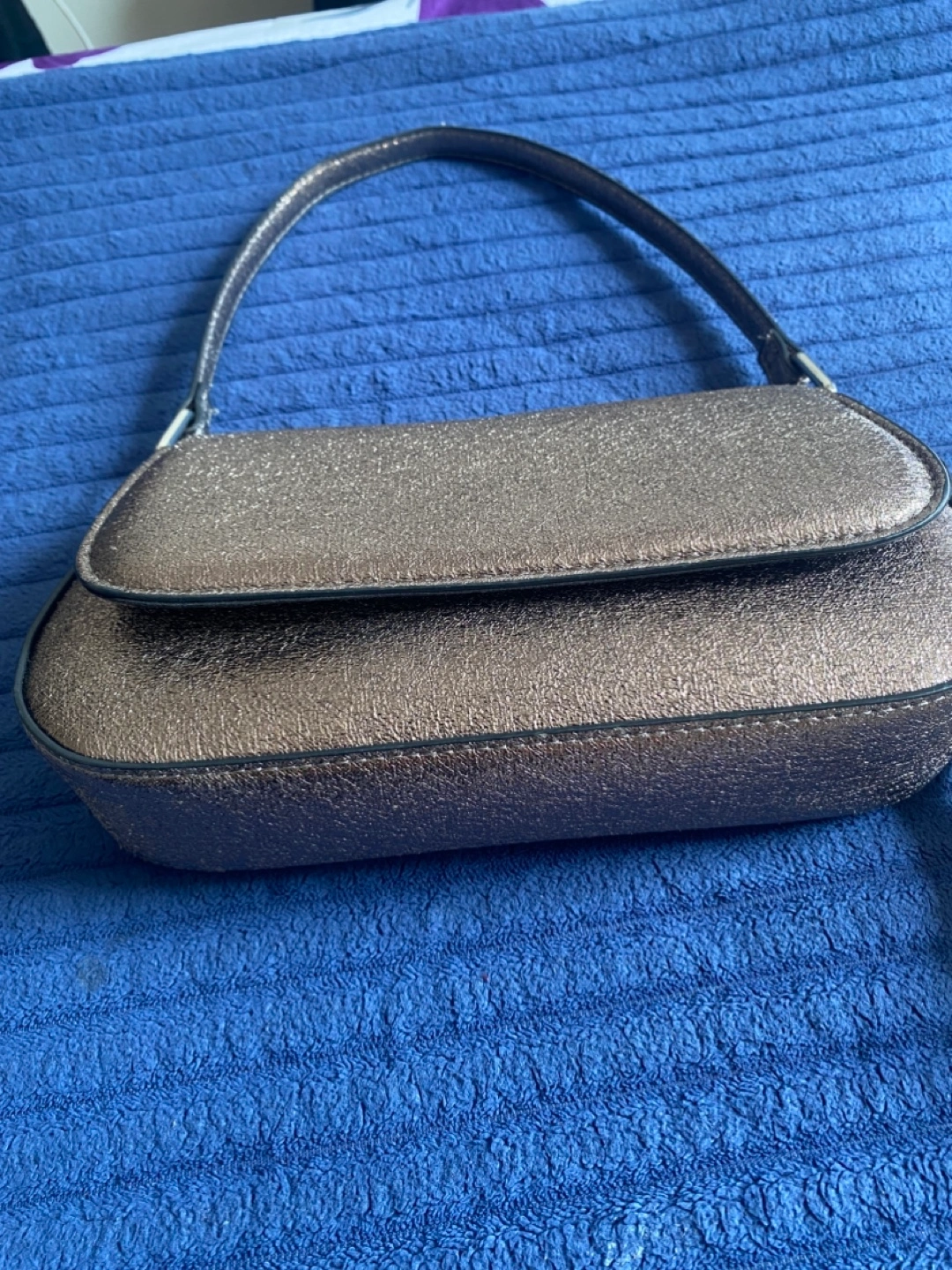 61A beautiful shoulder bag. It has a metallic finish. The bag has a strap. You'll feel comfortable you can put your phone and other cosmetics. It has also coin chain , pick up Ozone park ,Queens