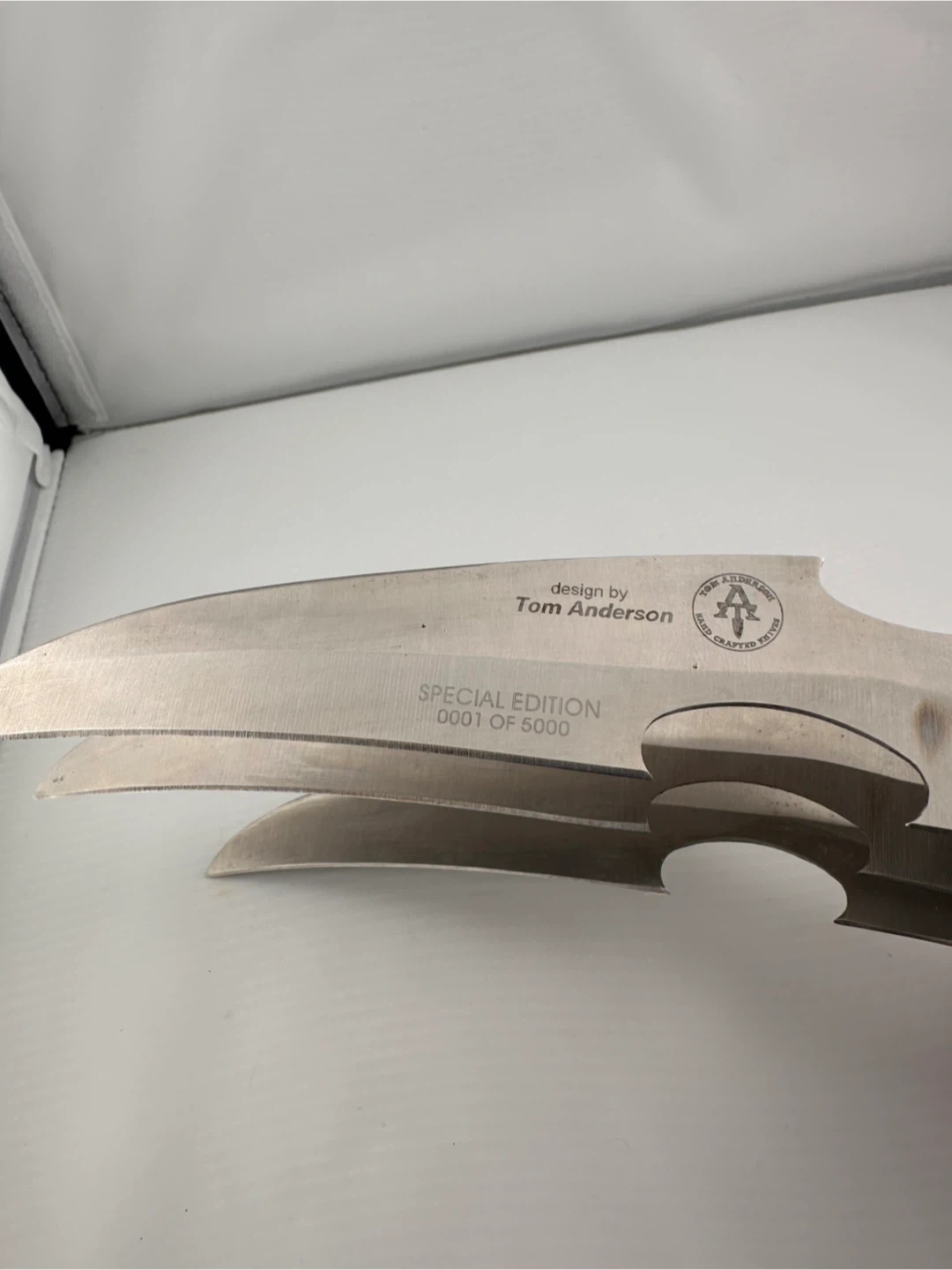 101Special Edition Tom Anderson Claw Knife – #0001 of 5000 Collectors and knife enthusiasts, check out this unique piece! Up for sale is a special edition claw knife designed by Tom Anderson, numbered 0001 of just 5000 produced. This striking item features three sharp, stainless steel blades mounted on a sturdy knuckle handle – a standout display piece for any collection. The handle has a detailed insignia and feels solid in hand, while the blades are positioned for maximum visual impact. Condition: Excellent, only handled for display and photos. Perfect for collectors, cosplay, or as a conversation starter. Details: • Designer: Tom Anderson • Special Edition: #0001 of 5000 • Stainless steel blades • Knuckle-style grip • Display and collector grade Serious inquiries only. Local pick up by Sutton place, all sales are final.